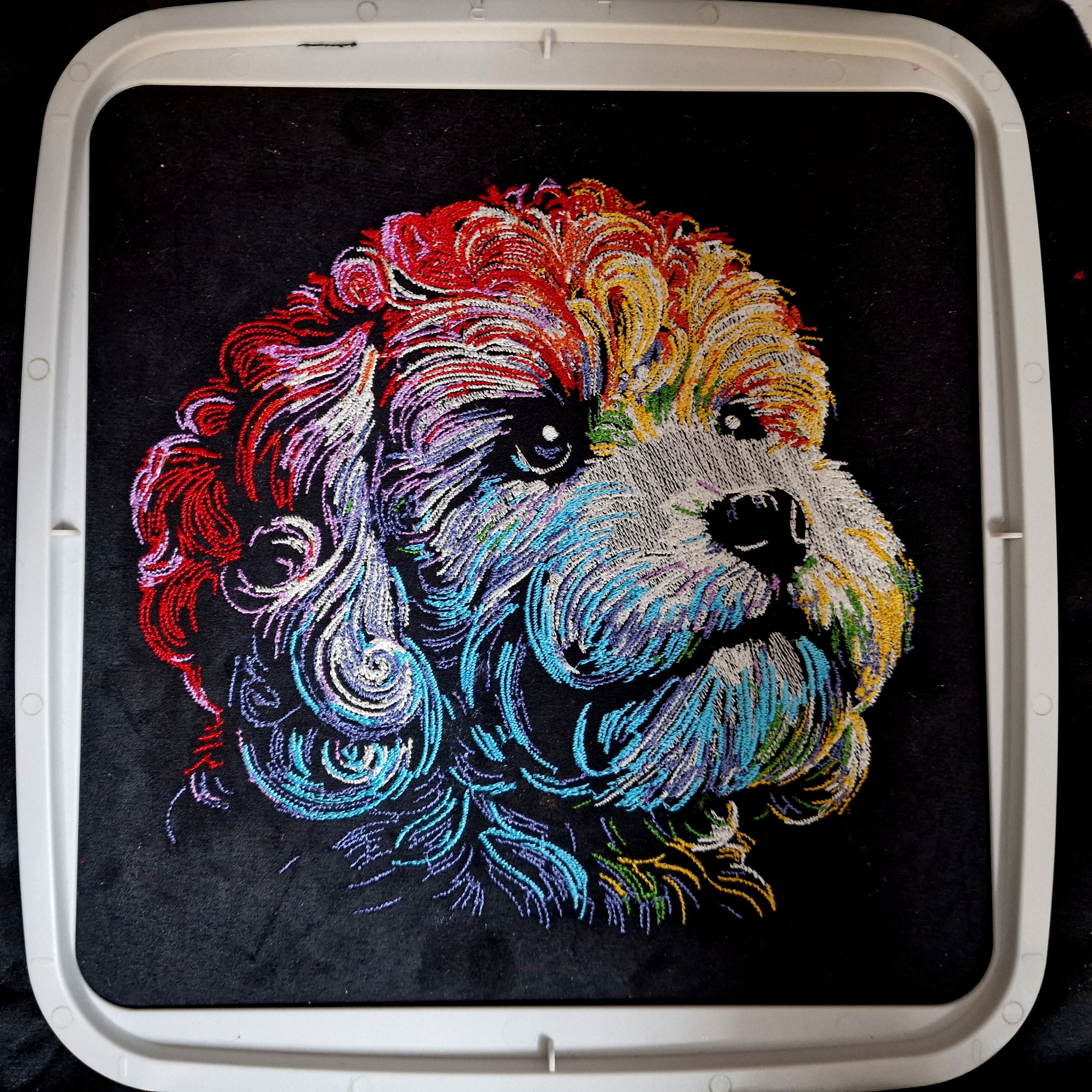 🐕Die aufwendige Stickdatei Hunderasse Bichpoo Mischlingshund Bichon Frisé und Zwergpudel "Cosima" von Lunachild ist ideal für Hundeliebhaber. Mit dieser detaillierten Datei kannst du den süßen Hund auf Kleidung, Taschen, Kissen und mehr verewigen. Perfekt für kreative Projekte und ein einzigartiges Design!🐕
