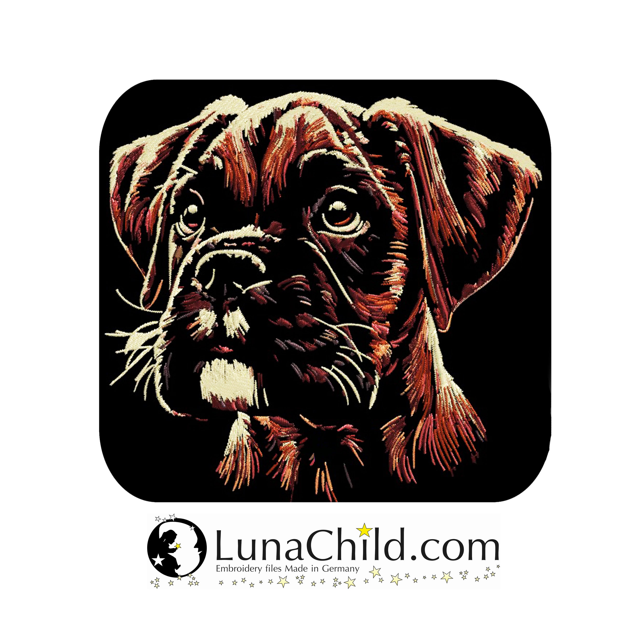 🐕Die Stickdatei Hunderasse Boxer Welpe "Monroe" von Lunachild ist ideal für Hundeliebhaber. Mit dieser detaillierten Datei kannst du den süßen Hund auf Kleidung, Taschen und mehr verewigen. Perfekt für kreative Projekte und ein einzigartiges Design!🐕