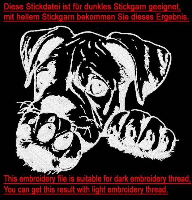 🐕Die Stickdatei Hunderasse Boxer "Whisky" von Lunachild ist ideal für Hundeliebhaber. Mit dieser detaillierten Datei kannst du den süßen Hund auf Kleidung, Taschen, Kissen und mehr verewigen. Perfekt für kreative Projekte und ein einzigartiges Design! 🐕