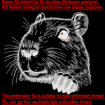 - Für realistische Stickdateien sind deutlich mehr Stiche als gewöhnlich nötig, damit sie ein schönes und detailreiches Ergebnis erhalten. Mit einem dickeren Garn und einer dickeren Nadel kann das Ergebnis unscharf und konturlos wirken. Zudem kann der Faden schneller reißen. Die Datei sollte auf einen festen Stoff sowie ein stabiles Stickvlies gestickt werden.