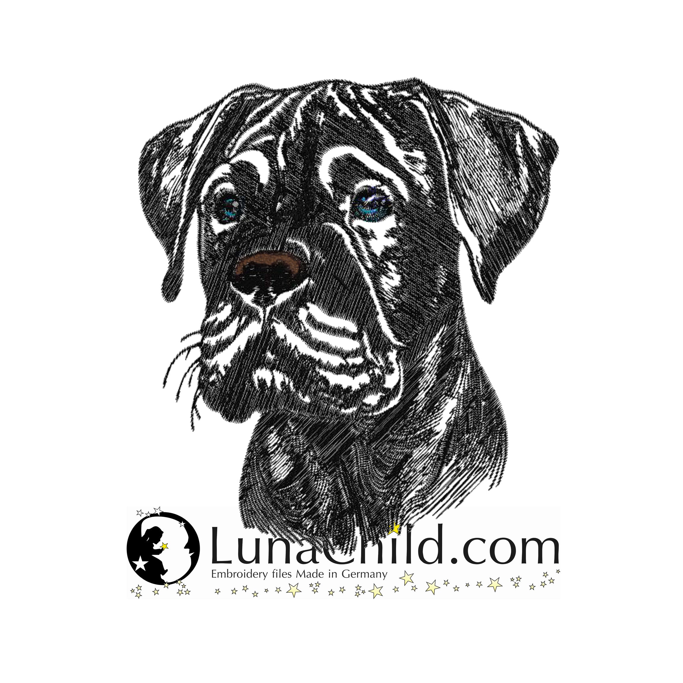 🐕Die Stickdatei Hunderasse Carne Corso "Gill" von Lunachild ist ideal für Hundeliebhaber. Mit dieser detaillierten Datei kannst du den süßen Hund auf Kleidung, Taschen, Kissen und mehr verewigen. Perfekt für kreative Projekte und ein einzigartiges Design! 🐕