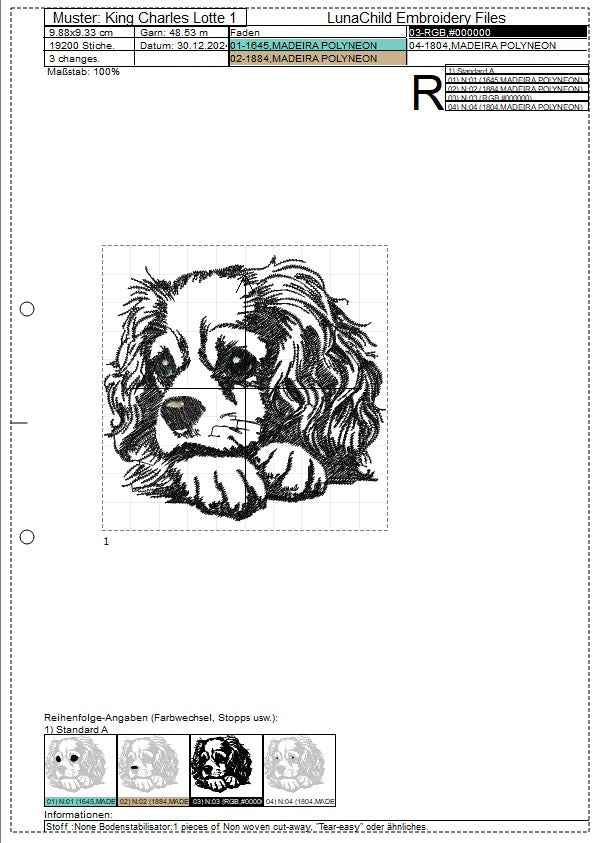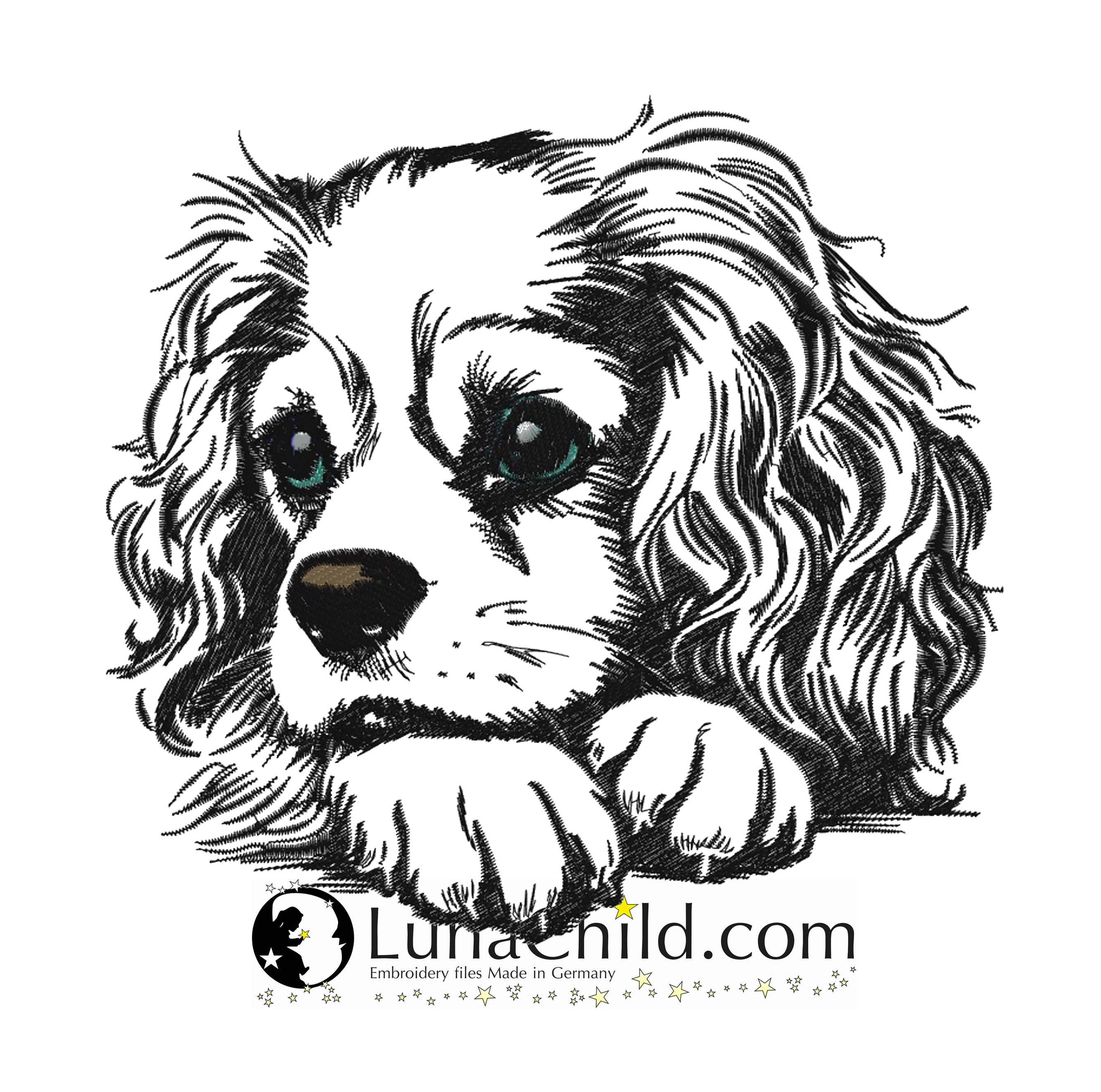 🐕Die Stickdatei Hunderasse King Charles Cavalier "Lotte" von Lunachild ist ideal für Hundeliebhaber. Mit dieser detaillierten Datei kannst du den süßen Hund auf Kleidung, Taschen und mehr verewigen. Perfekt für kreative Projekte und ein einzigartiges Design! 🐕