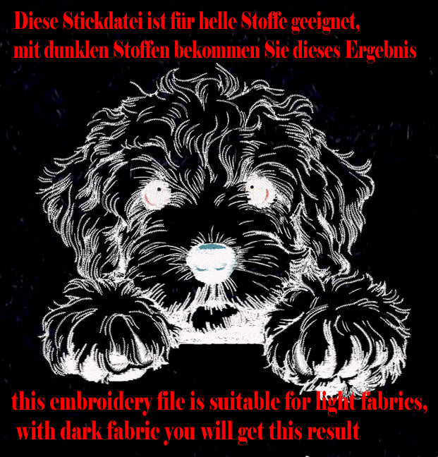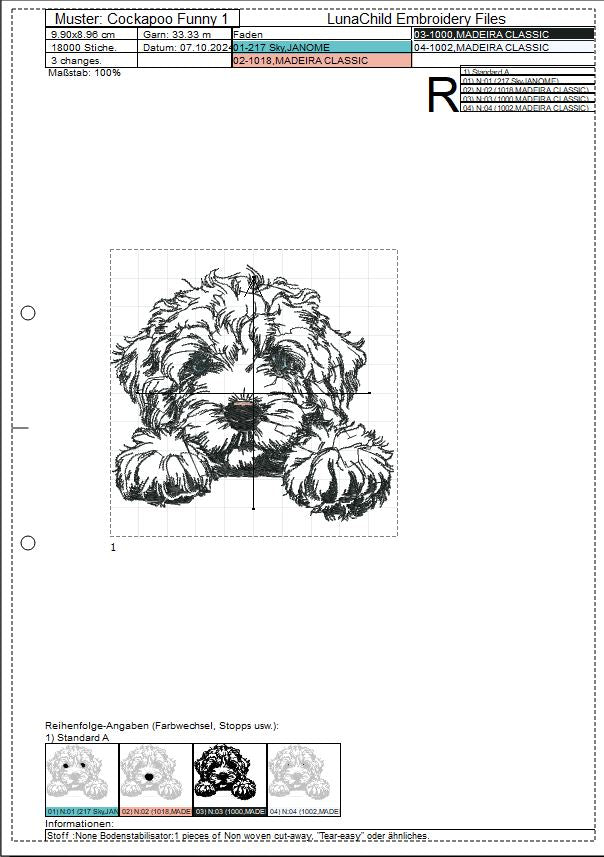 🐕Die Stickdatei Hunderasse Cockapoo Welpe "Funny" von Lunachild ist ideal für Hundeliebhaber. Mit dieser detaillierten Datei kannst du den süßen Hund auf Kleidung, Taschen und mehr verewigen. Perfekt für kreative Projekte und ein einzigartiges Design! 🐕