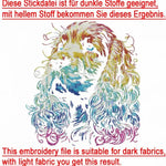 AUFWENDIGE Stickdatei, die in die Richtung Fotostich geht, die Stickzeit bei Größe 5 auf einer Janome 550 E beträgt (bei einer Stickgeschwindigkeit von 860 Stichen in der Minute) 107 Minuten. Es fallen viele Spannfäden an, die nach JEDER Farbe abgeschnitten werden müssen