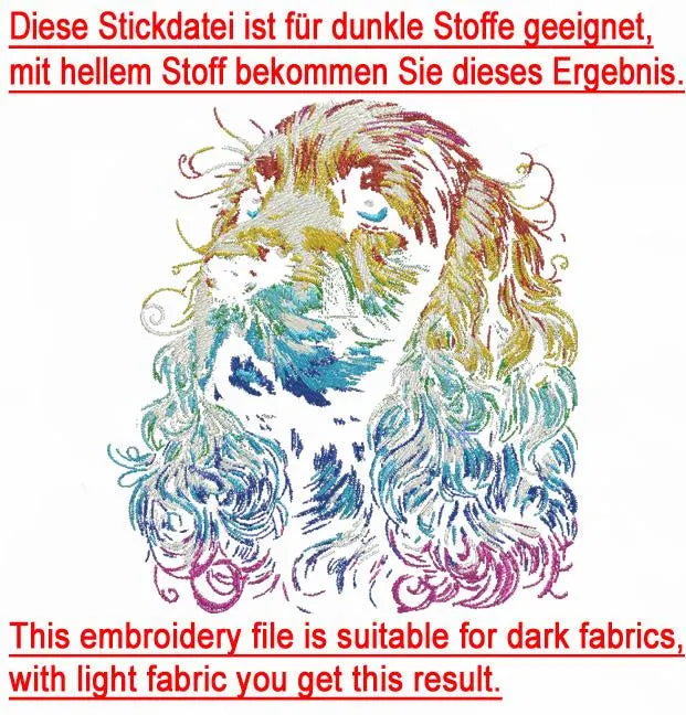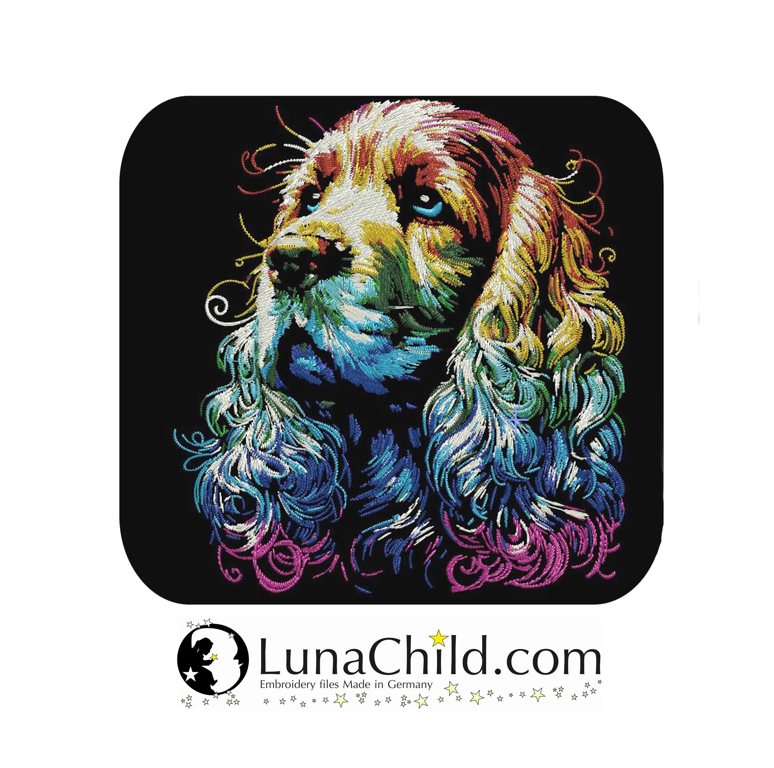 🐾Stickdatei Cocker Spaniel in Regenbogenfarben "Moreno"🐾