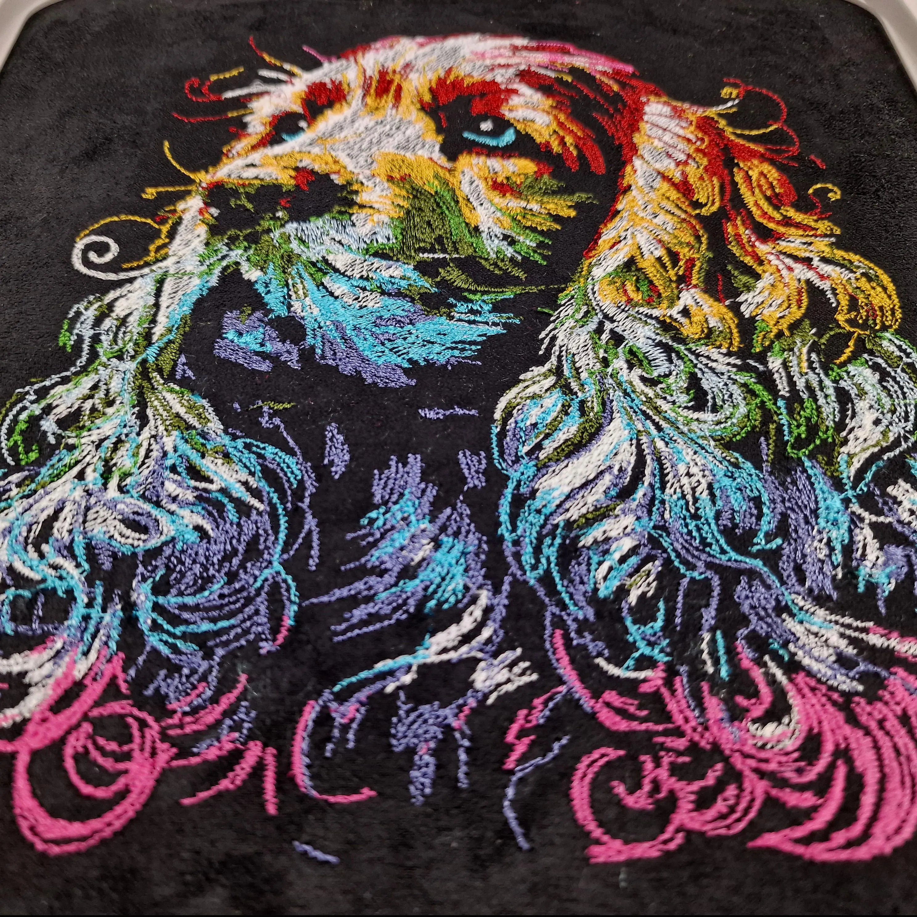 - Für realistische Stickdateien sind deutlich mehr Stiche als gewöhnlich nötig, damit sie ein schönes und detailreiches Ergebnis erhalten. Mit einem dickeren Garn und einer dickeren Nadel kann das Ergebnis unscharf und konturlos wirken. Zudem kann der Faden schneller reißen. Die Datei sollte auf einen festen Stoff sowie ein stabiles Stickvlies gestickt werden.