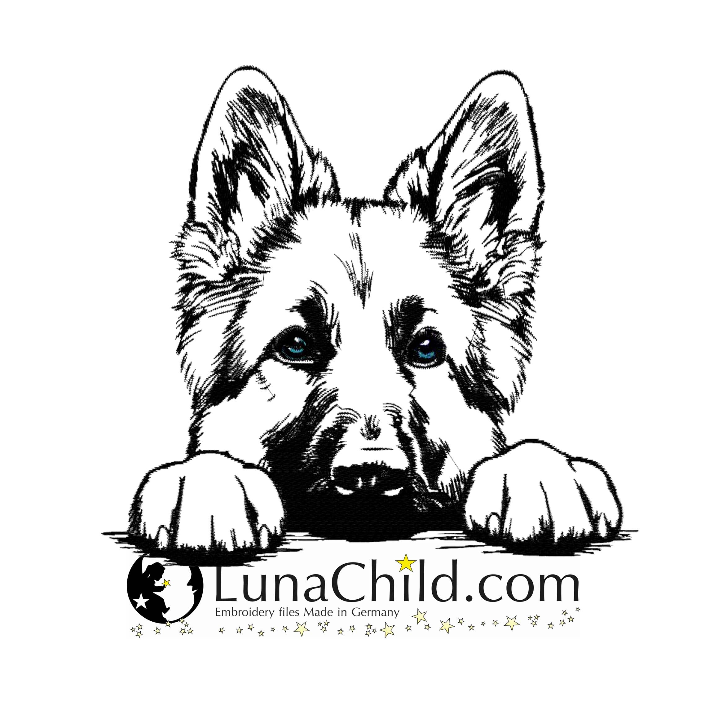 🐕Die Stickdatei Hunderasse deutscher Schäferhund "Helli" von Lunachild ist ideal für Hundeliebhaber. Mit dieser detaillierten Datei kannst du den süßen Hund auf Kleidung, Taschen und mehr verewigen. Perfekt für kreative Projekte und ein einzigartiges Design! 🐕