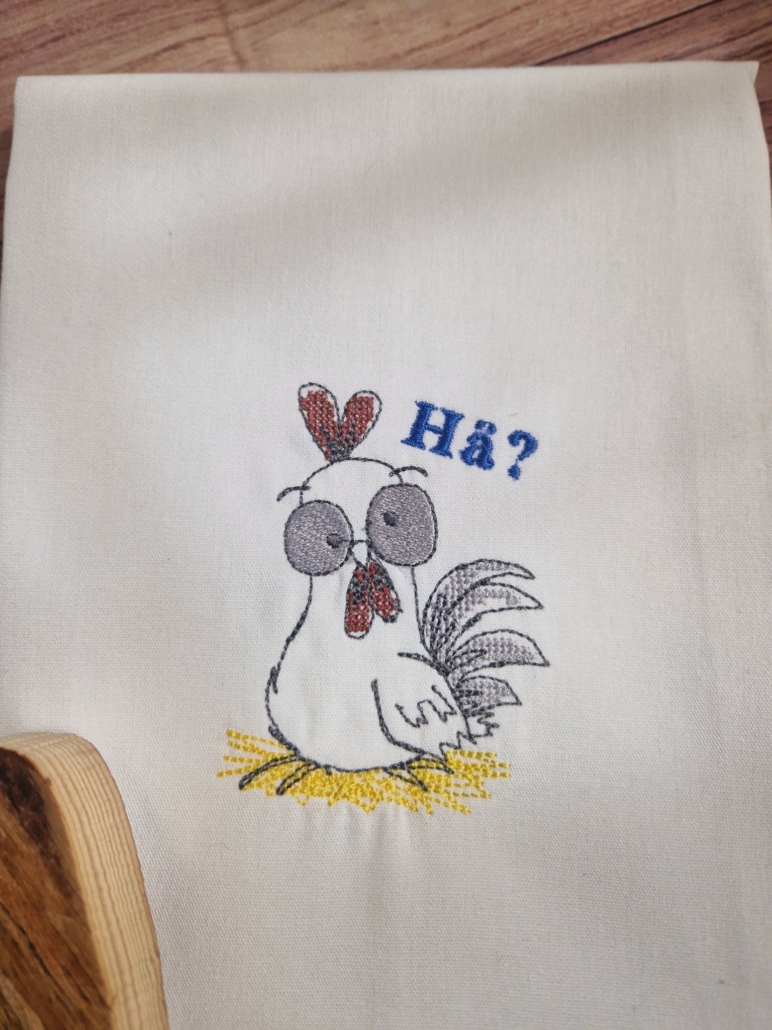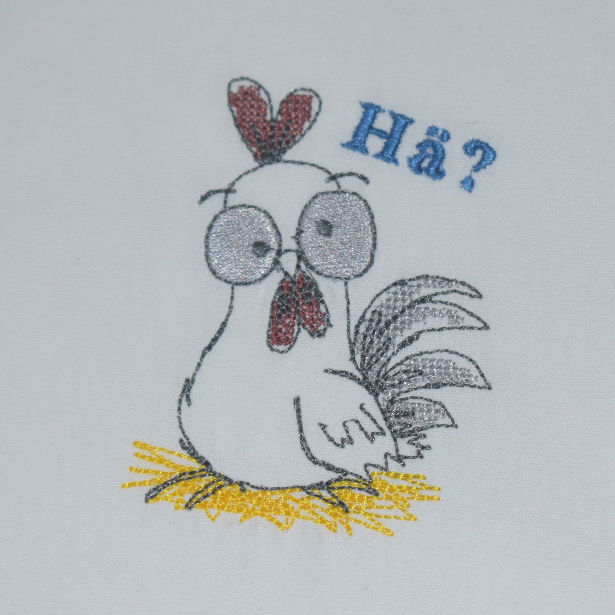 - Stickgarn in schwarz, weiß, rot, blau und gelb