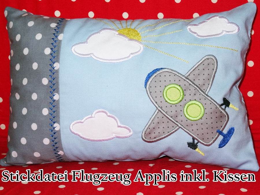 ♥ Stickdatei für ein lustiges Flugzeug mit Wolken ♥