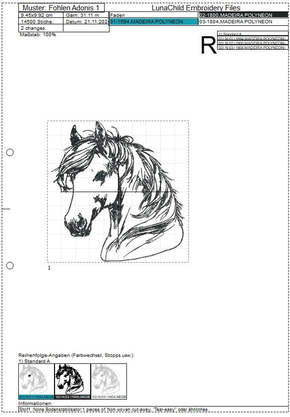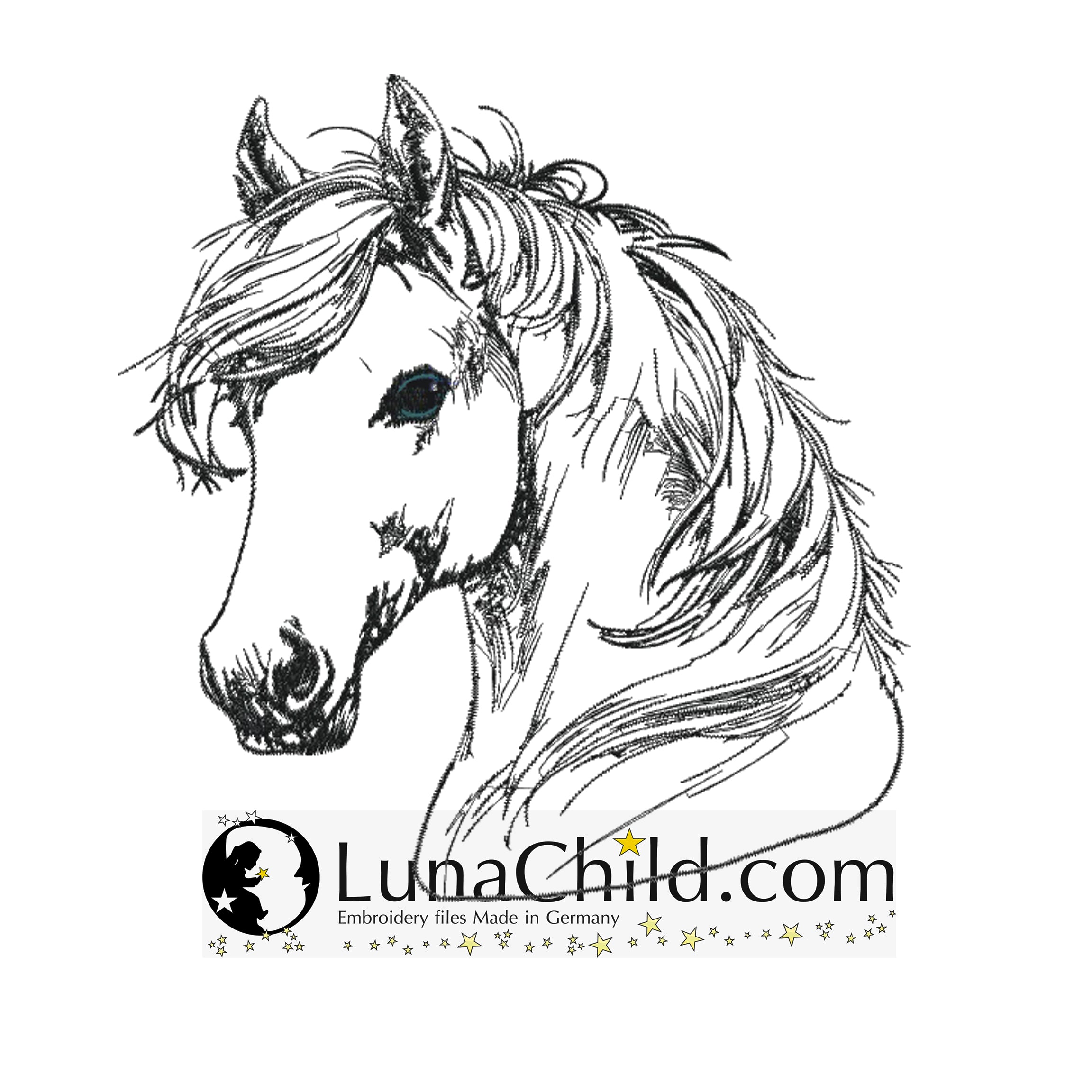 Die Stickdatei Folen "Adonisy" von Lunachild ist ideal für Pferdeliebhaber. Mit dieser detaillierten Datei kannst du das süße Fohlen auf Kleidung, Taschen und mehr verewigen. Perfekt für kreative Projekte und ein einzigartiges Design!