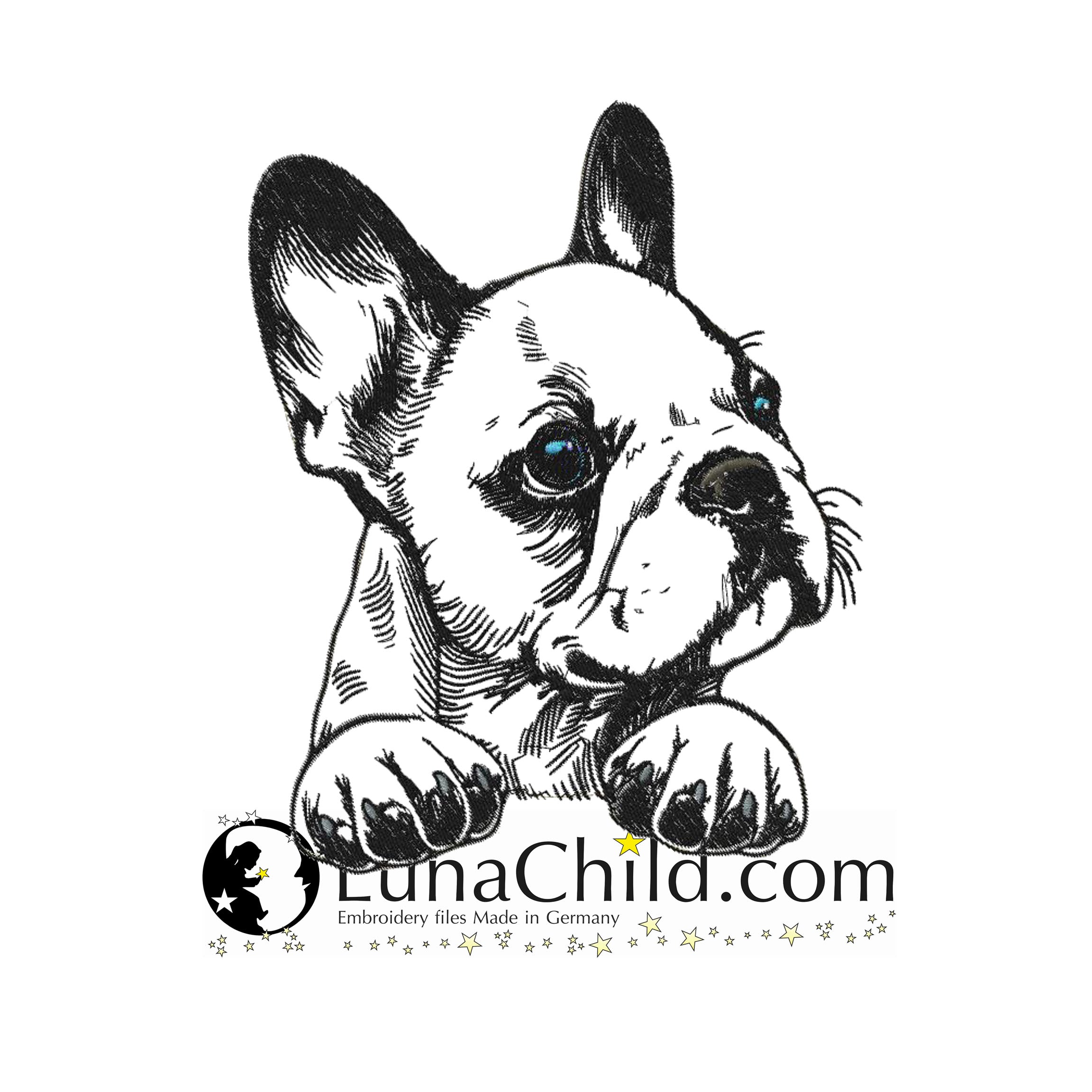 🐕Die Stickdatei Hunderasse Französische Bulldogge "Luna" von Lunachild ist ideal für Hundeliebhaber. Mit dieser detaillierten Datei kannst du den süßen Hund auf Kleidung, Taschen, Kissen und mehr verewigen. Perfekt für kreative Projekte und ein einzigartiges Design! 🐕