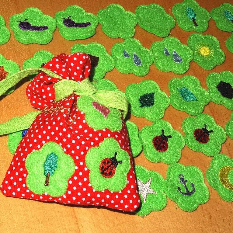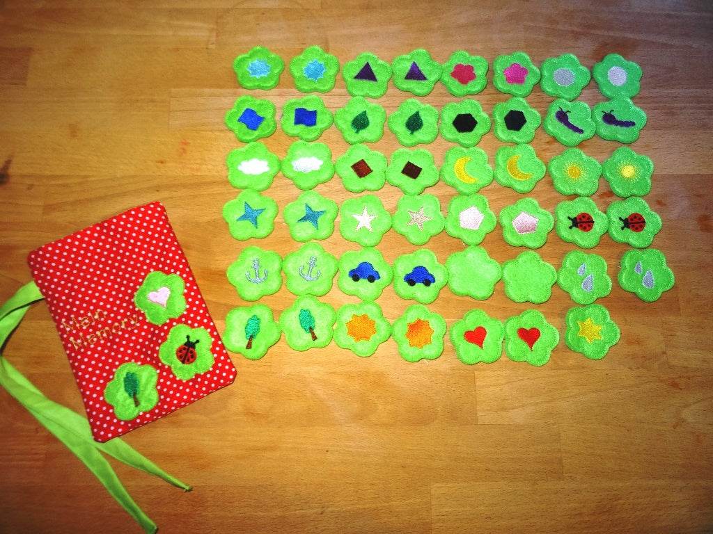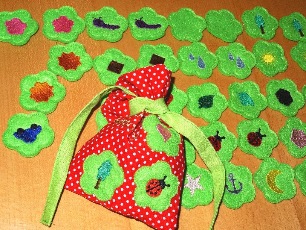 Stickdatei fuer ein Mega-Memory-Spiel mit Beutelchen ITH - Sewando