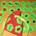 wenn ihr alle Blümchen macht und Euer Filz etwas dicker ist müsst ihr eventuell 2 Beutelchen herstellen.