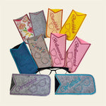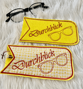 schöne Stickdateien für Brillen mit Satinrand und Motivrand sie werden komplett im Stickrahmen erstellt
