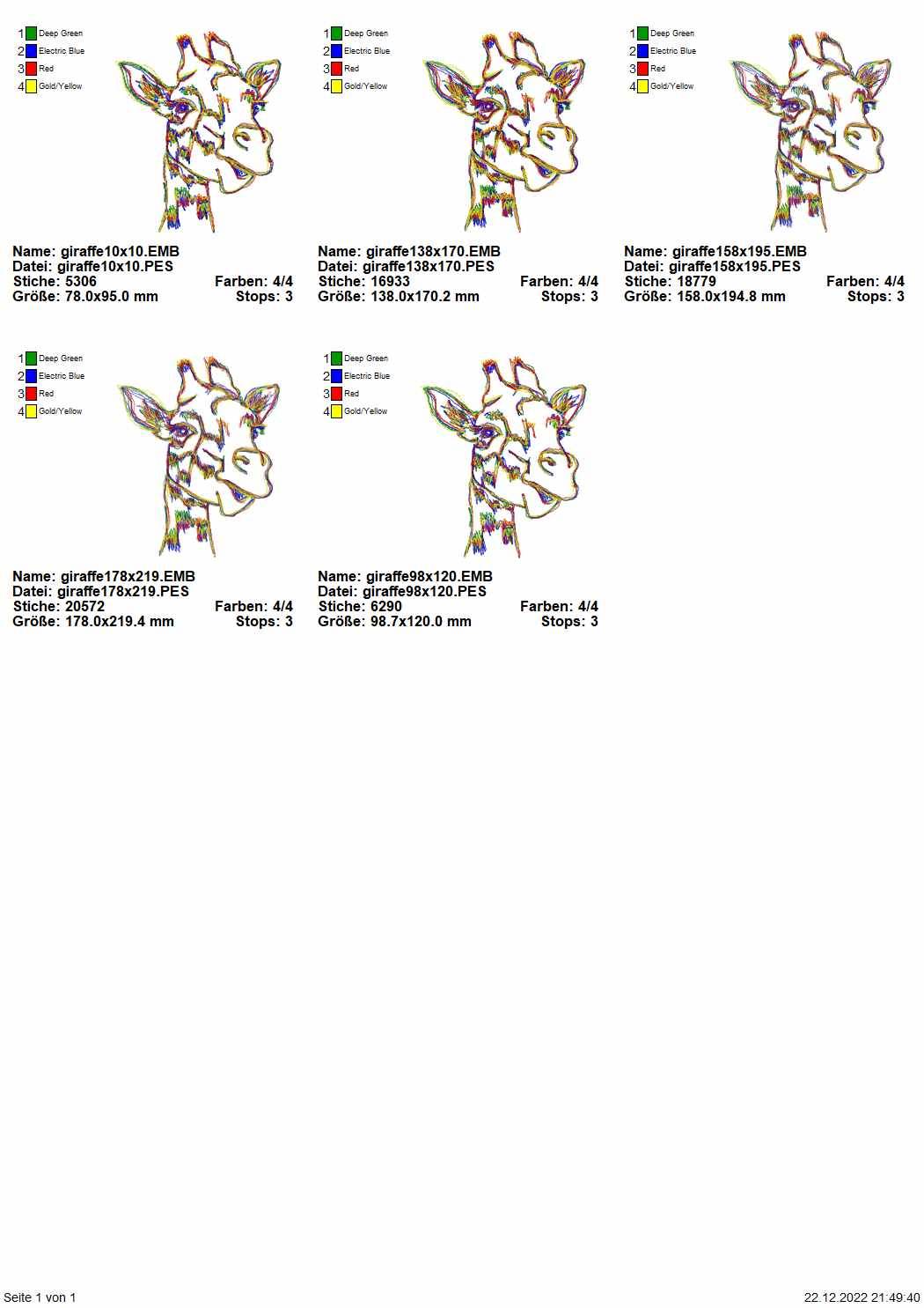 Abmessungen, Stichzahl und Farben der Stickdateien: