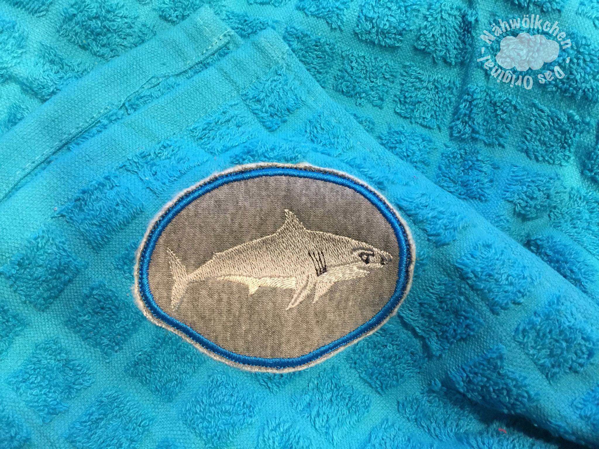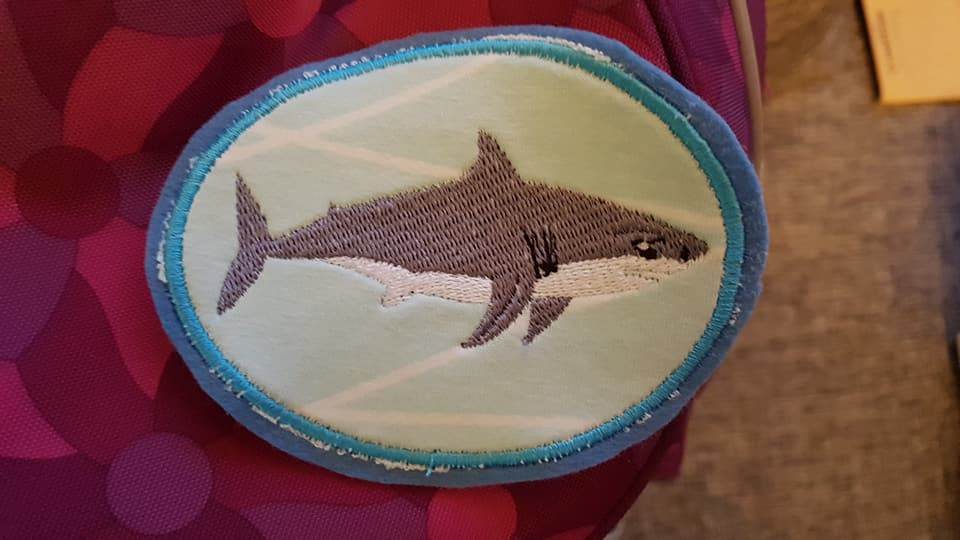 Du kannst ihn auf Shirts in Brusthöhe sticken, als Anhänger gestalten oder eben mit Klett auf der Rückseite nähen, um ihn als Klettie für Ranzen zu verwenden. Wenn du beide Patches stickst, kannst du entweder die Kletties ab und zu austauschen oder ein Haifamilien Komplettpaket daraus machen.