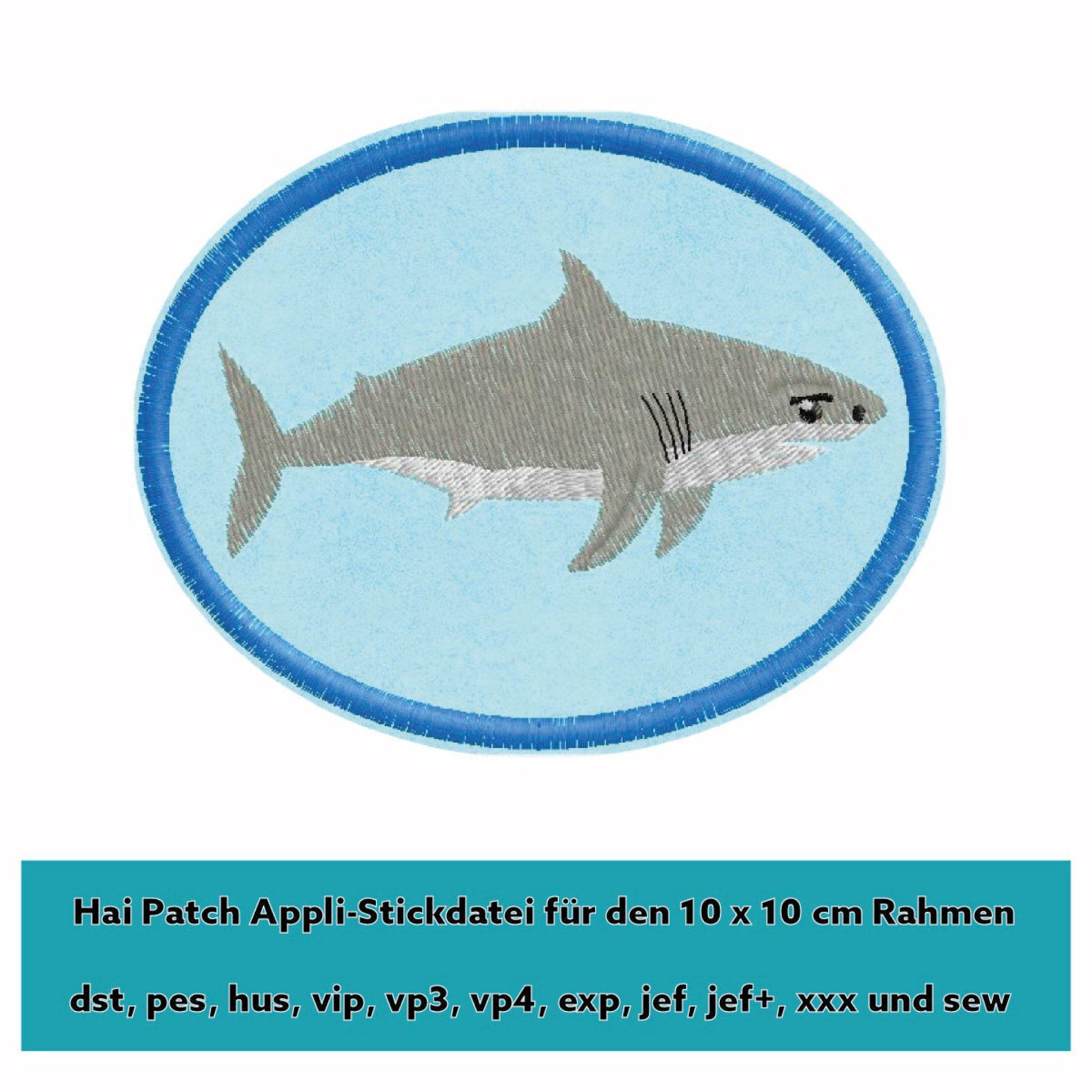 Stickdatei "Hai Patch Nr. 1" für den 10x10 cm Rahmen