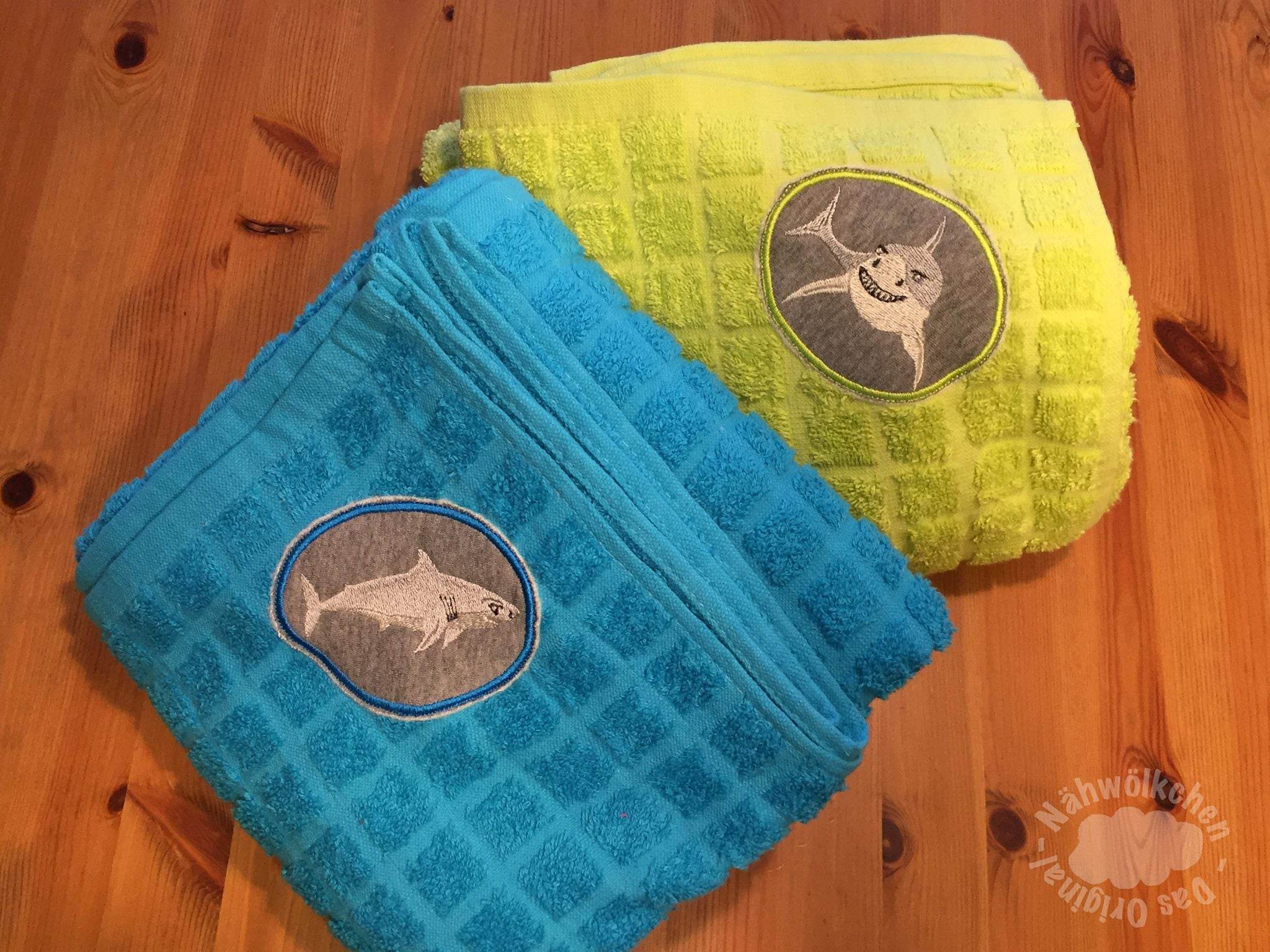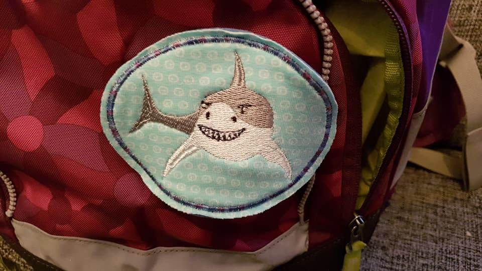 Du kannst ihn auf Shirts in Brusthöhe sticken, als Anhänger gestalten oder eben mit Klett auf der Rückseite nähen, um ihn als Klettie für Ranzen zu verwenden. Wenn du beide Patches stickst, kannst du entweder die Kletties ab und zu austauschen oder ein Haifamilien Komplettpaket daraus machen.