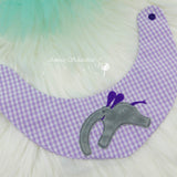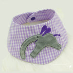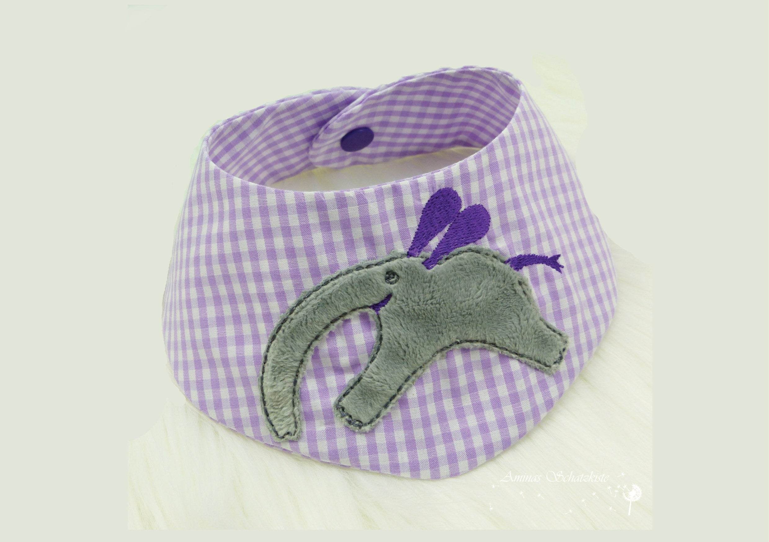 Halstuch für die Stickmaschine. Nur eine kleine Wendeöffnung wird zum Schluss mit der Hand oder der Nähmaschine geschlossen. Halsumfang ca. 30 cm, je nach Position des Druckknopfes. Größe der Applikation: 10,5 cm x 6,5 cm.