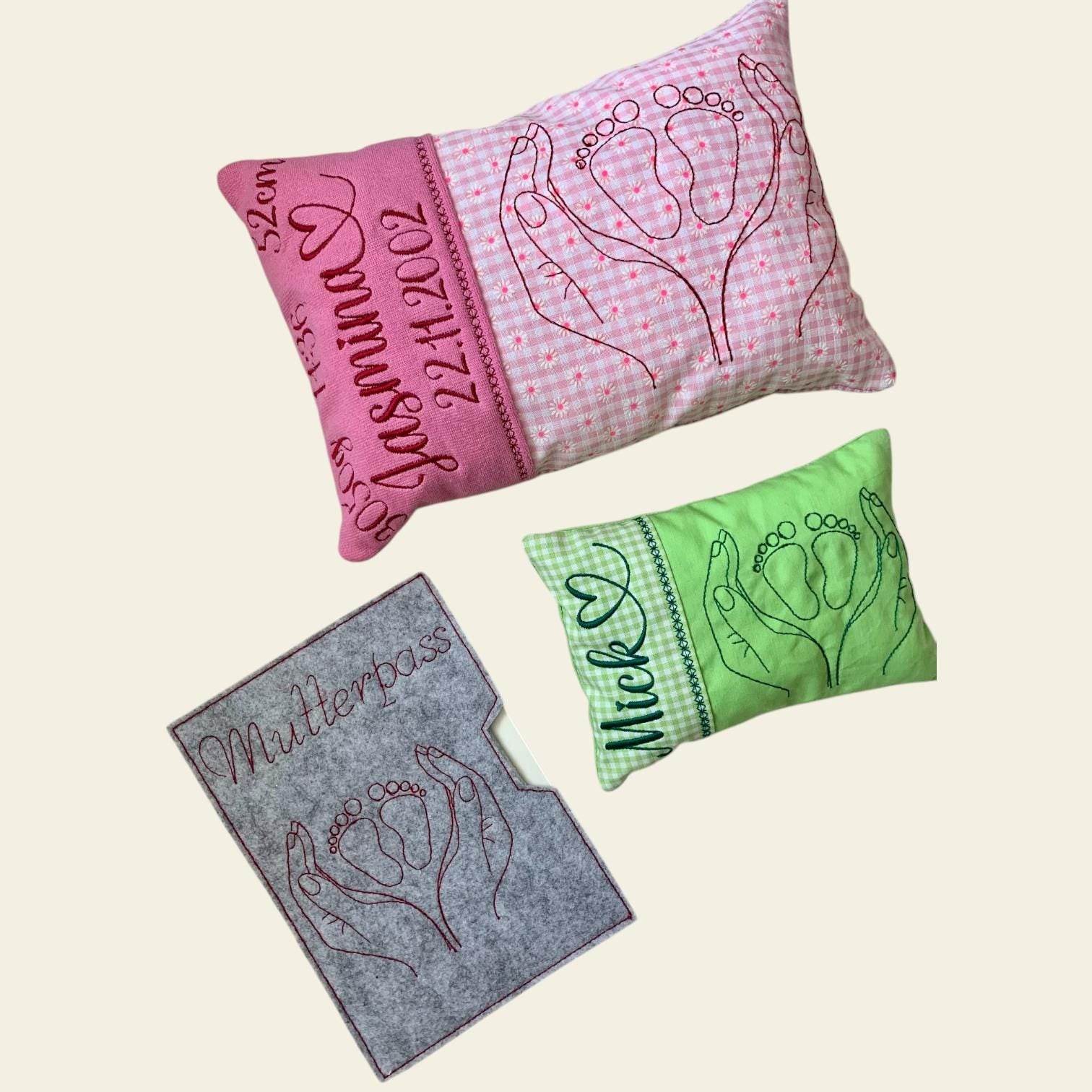 Stickdatei Mutterpass Hände und Babyfüsse Set 832