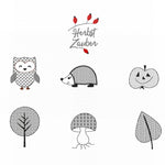 Stickdatei Herbst 10 cm x 10 cm, Redwork, Igel, Kürbis, Schrift, Baum, Blatt, Eule, Pilz, sticken - Sewando