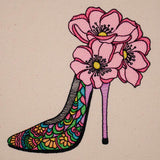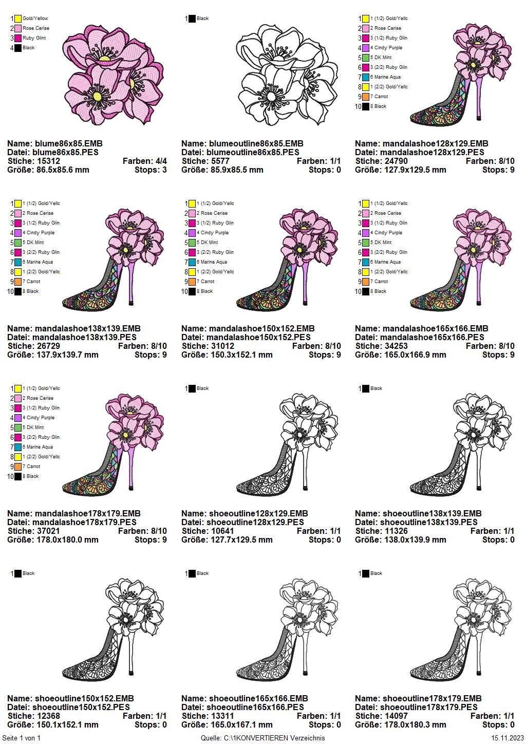 Stickdatei für einen stylischen High Heel im Mandala-Look & Blumenbouquet