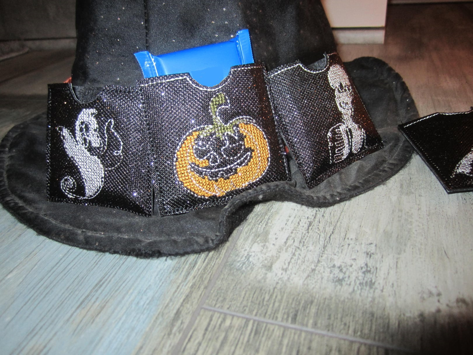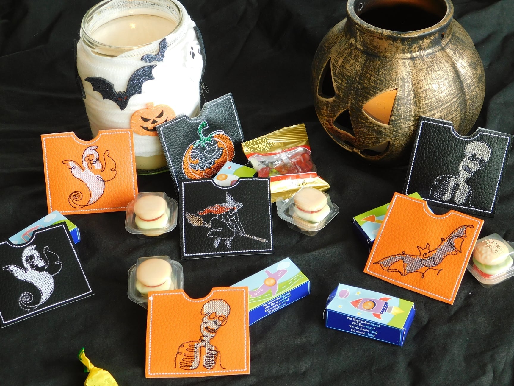 - 6 Motive (Fledermaus, Kürbis, Vollmond, Hexe, Gespenst und Skelett)
