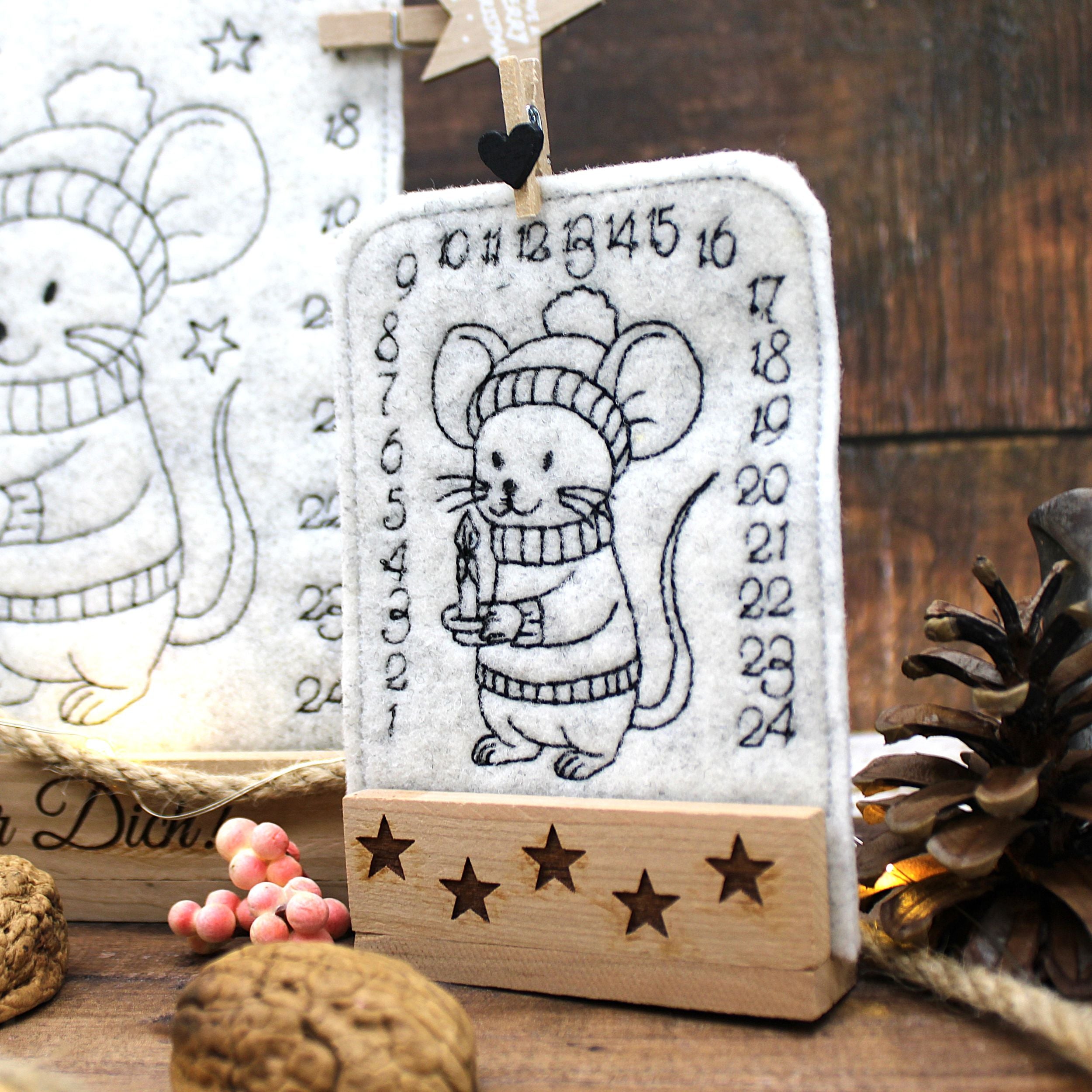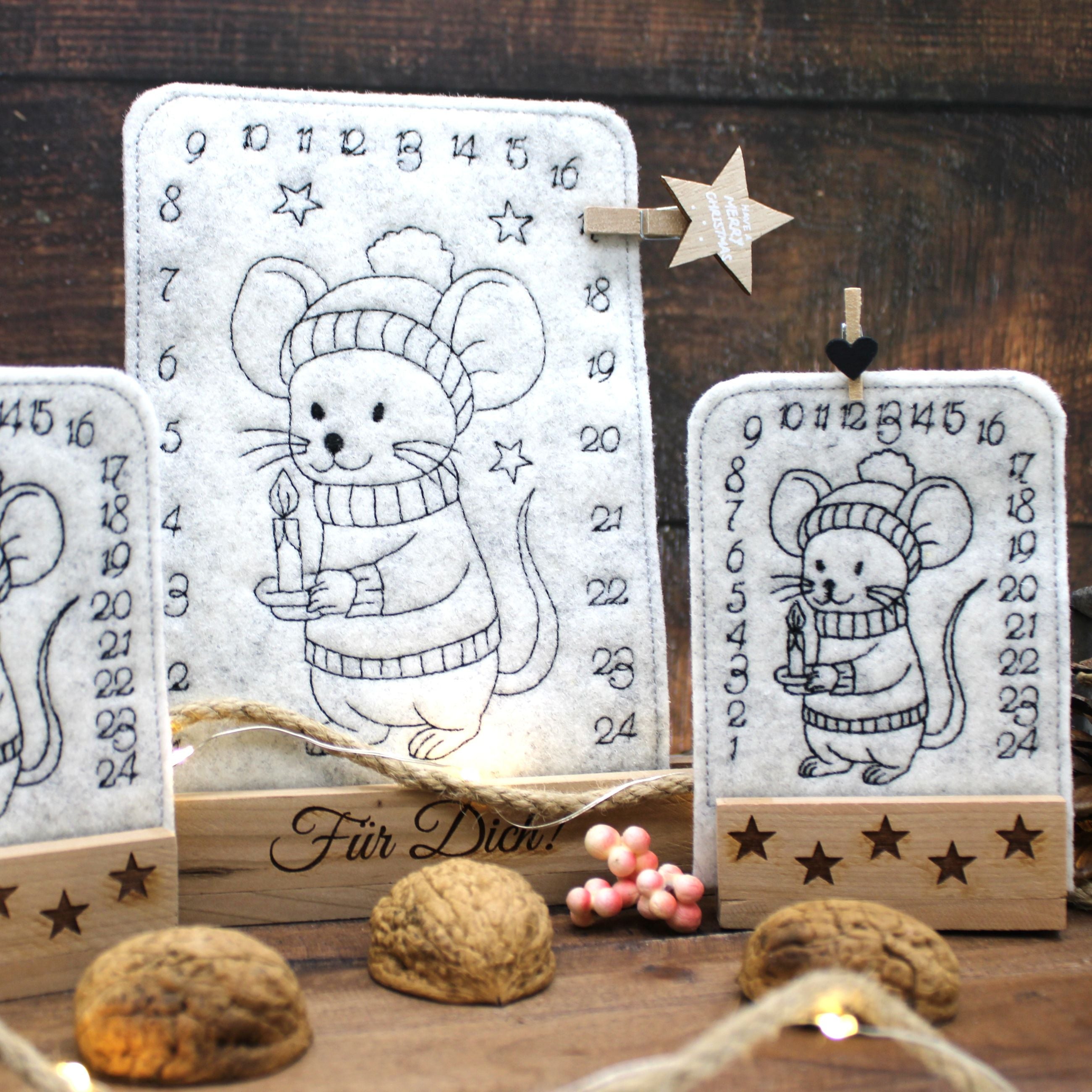 Stickdatei ITH Adventskalender ab 10x10cm Maus Tischadventskalender Weihnachten Advent