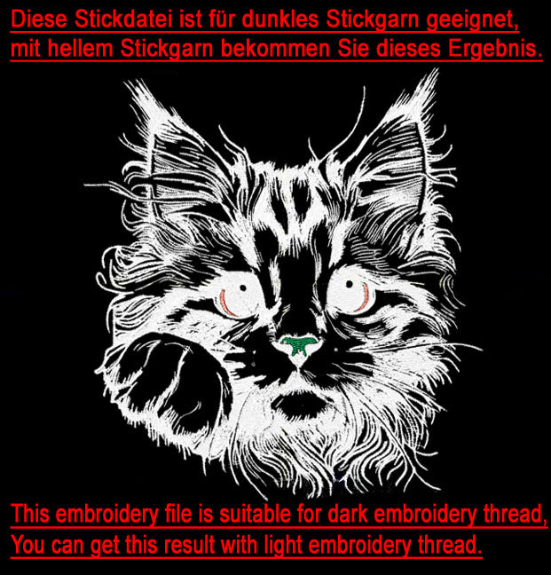 - Für realistische Stickdateien sind deutlich mehr Stiche als gewöhnlich nötig, damit sie ein schönes und detailreiches Ergebnis erhalten. Mit einem dickeren Garn und einer dickeren Nadel kann das Ergebnis unscharf und konturlos wirken. Zudem kann der Faden schneller reißen. Die Datei sollte auf einen festen Stoff sowie ein stabiles Stickvlies gestickt werden.