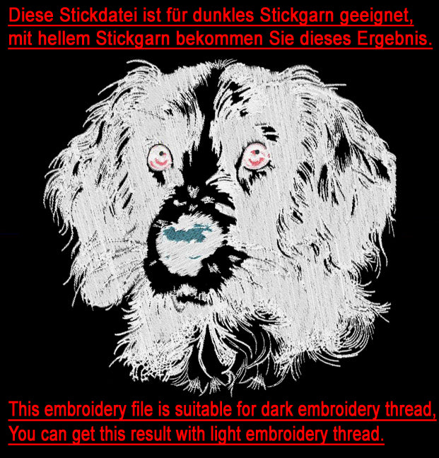 - Für realistische Stickdateien sind deutlich mehr Stiche als gewöhnlich nötig, damit sie ein schönes und detailreiches Ergebnis erhalten. Mit einem dickeren Garn und einer dickeren Nadel kann das Ergebnis unscharf und konturlos wirken. Zudem kann der Faden schneller reißen. Die Datei sollte auf einen festen Stoff sowie ein stabiles Stickvlies gestickt werden.
