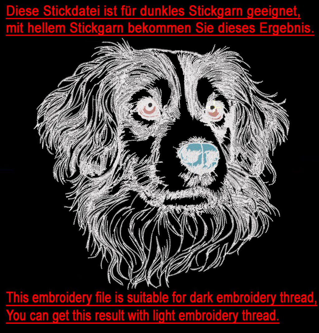 - Für realistische Stickdateien sind deutlich mehr Stiche als gewöhnlich nötig, damit sie ein schönes und detailreiches Ergebnis erhalten. Mit einem dickeren Garn und einer dickeren Nadel kann das Ergebnis unscharf und konturlos wirken. Zudem kann der Faden schneller reißen. Die Datei sollte auf einen festen Stoff sowie ein stabiles Stickvlies gestickt werden.