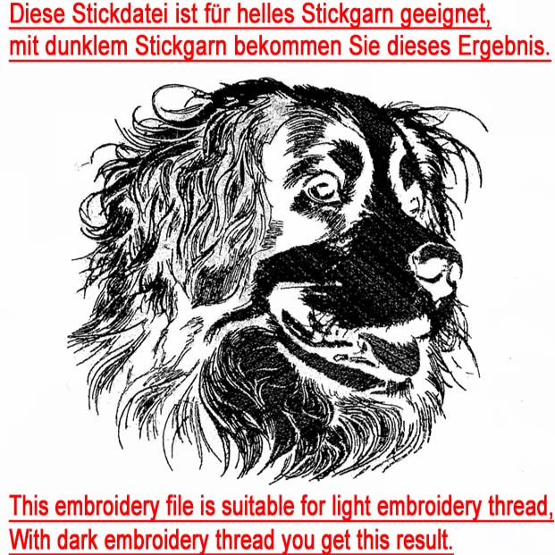 - Für realistische Stickdateien sind deutlich mehr Stiche als gewöhnlich nötig, damit sie ein schönes und detailreiches Ergebnis erhalten. Mit einem dickeren Garn und einer dickeren Nadel kann das Ergebnis unscharf und konturlos wirken. Zudem kann der Faden schneller reißen. Die Datei sollte auf einen festen Stoff sowie ein stabiles Stickvlies gestickt werden.