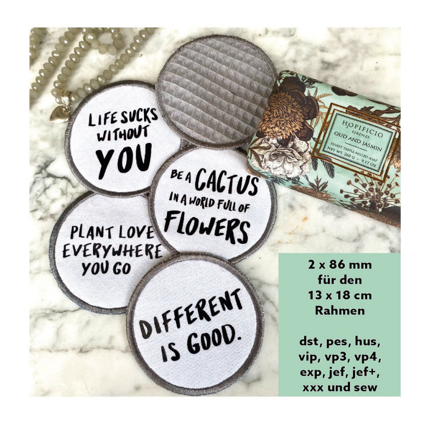 Selbstgestickte Kosmetikpads sind die ideale Alternative zu Einweg-Wattepads. Mit dieser Stickdatei kannst du wiederverwendbare Pads nähen und so deinen Beitrag zu weniger Müll leisten. Bitte beachte: Du erhältst hier eine feste Pad-Größe, weitere Größen findest du separat im Shop.