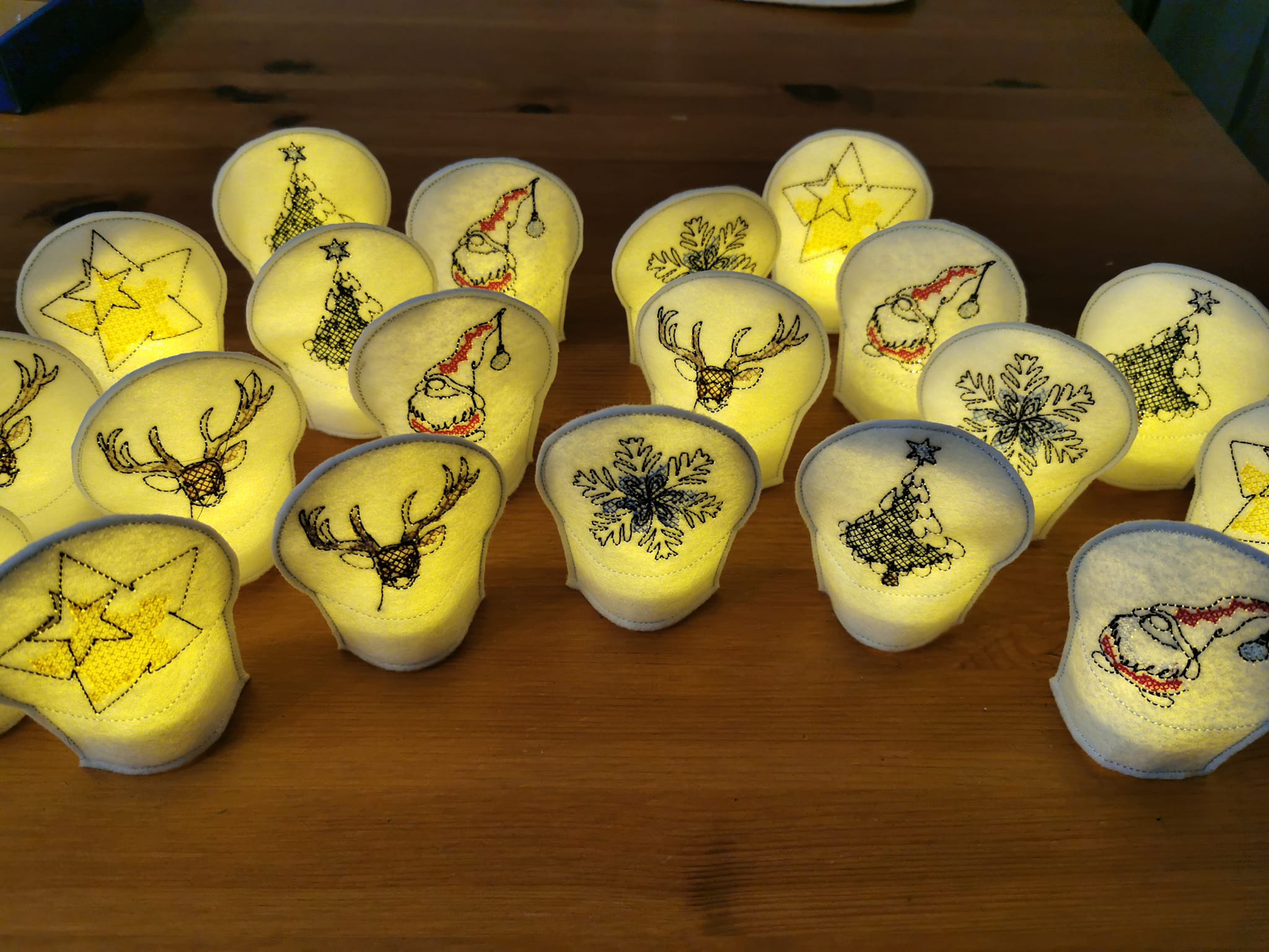 - 10 Motive (Nikolaussocke, Tanne, Wichtel / Gnom, Stern, Zuckerstange, Eiskristall, Glocke, Hirschkopf, Ilex, Mistelzweig)