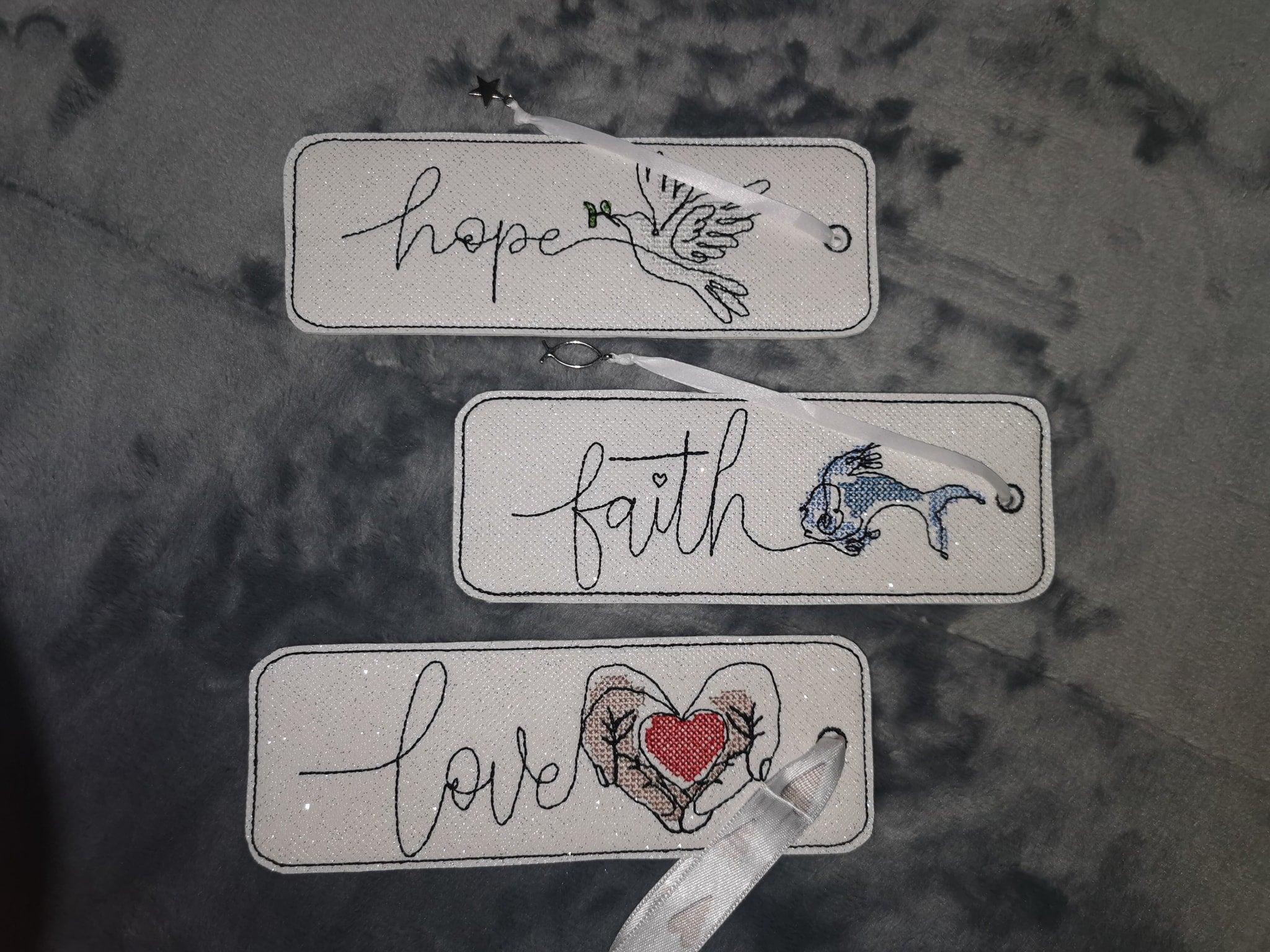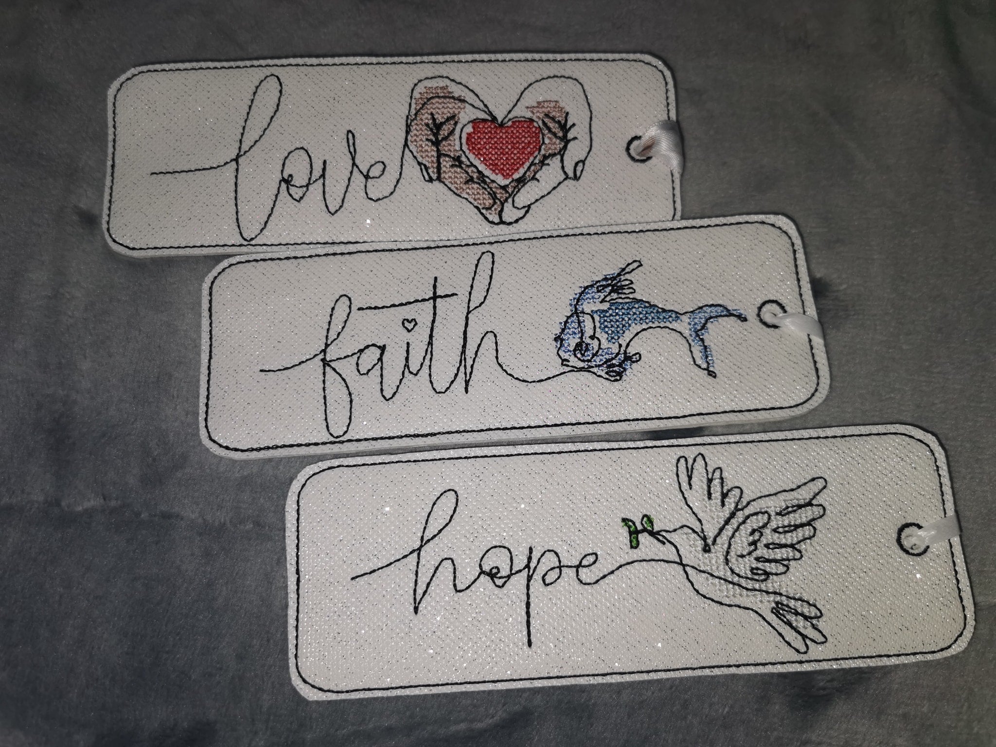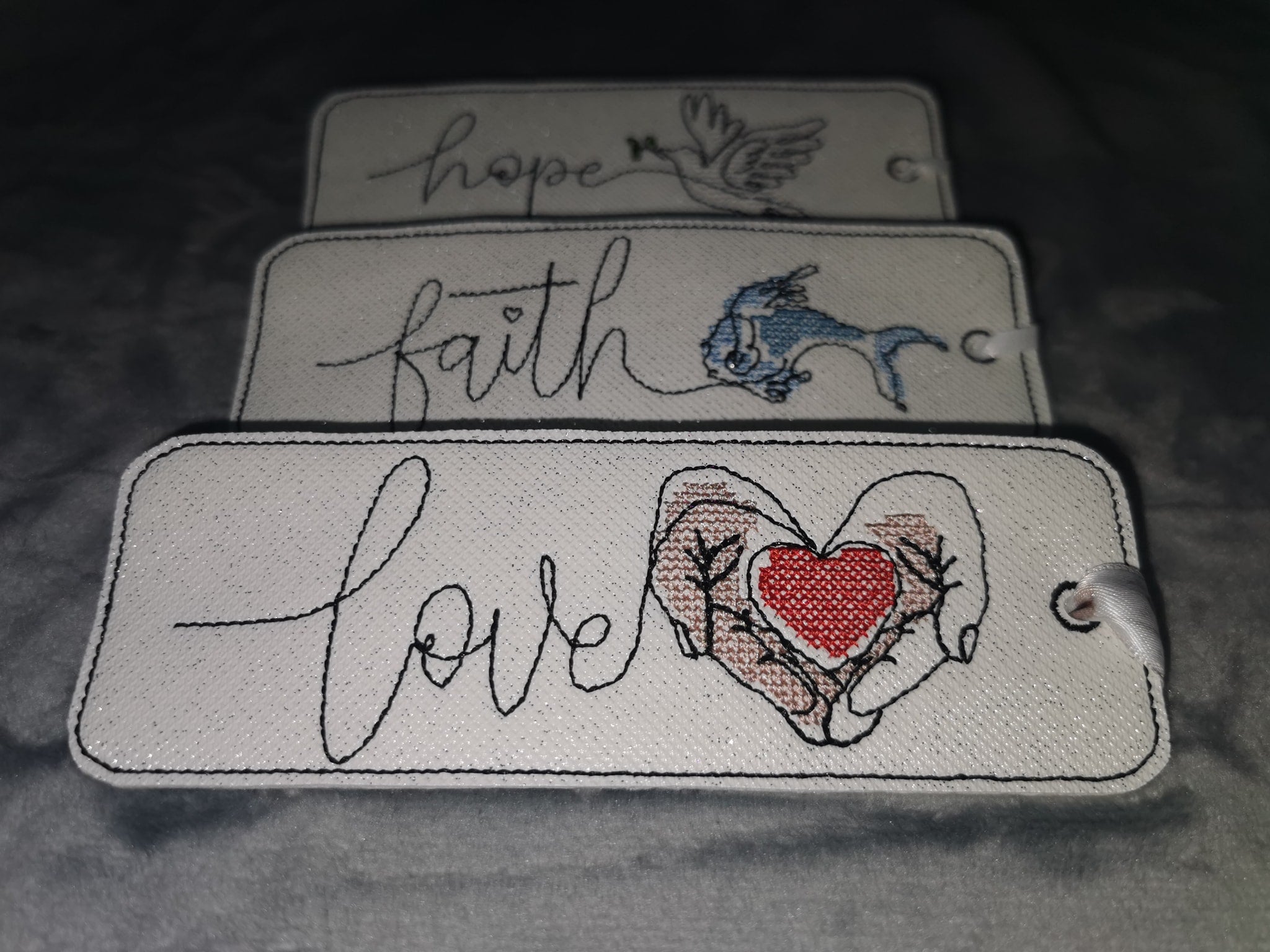 Stickdatei - Lesezeichen "Glaube - Liebe - Hoffnung"