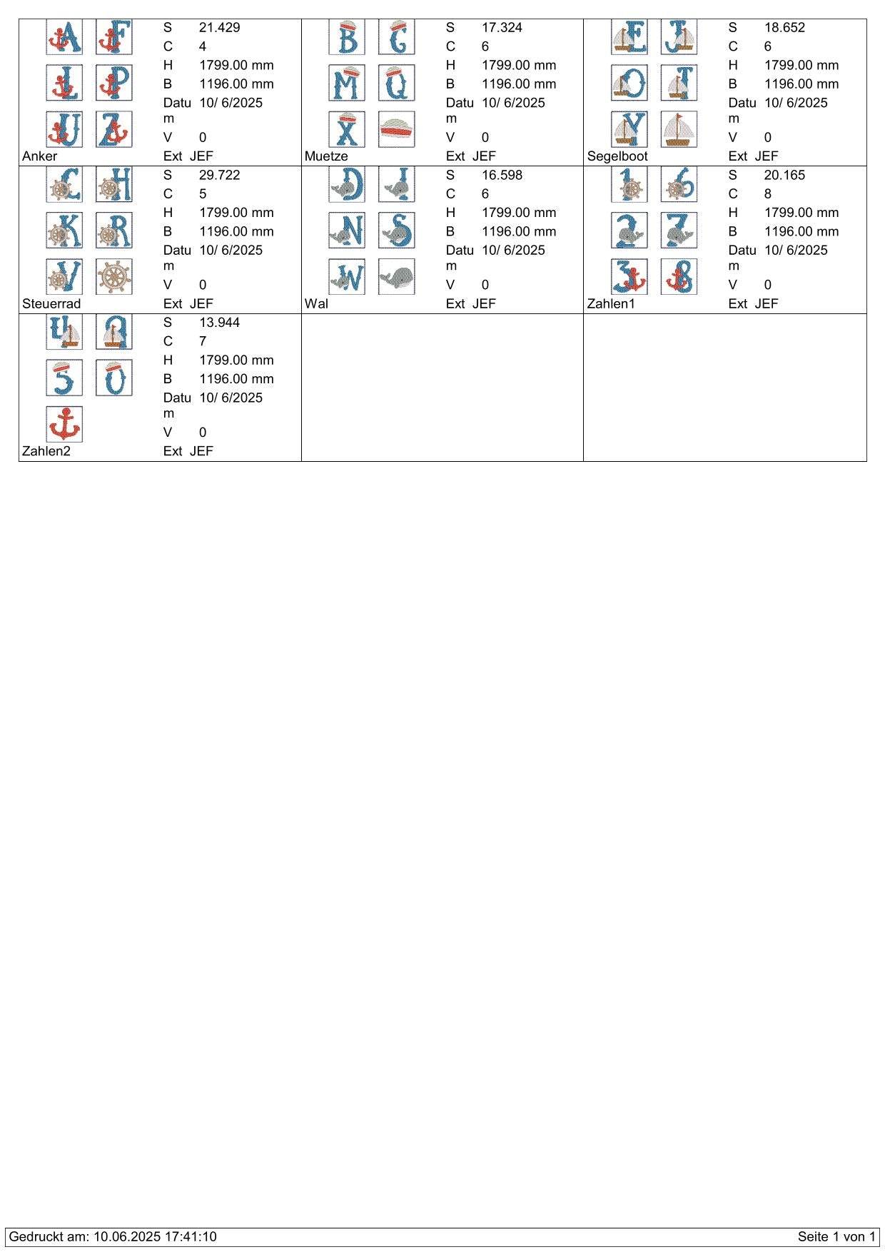 - Sie bekommen das kpl. ABC und die Zahlen von 0-9 und die Motive Anker, Mütze, Steuerrad, Segelboot und Wal