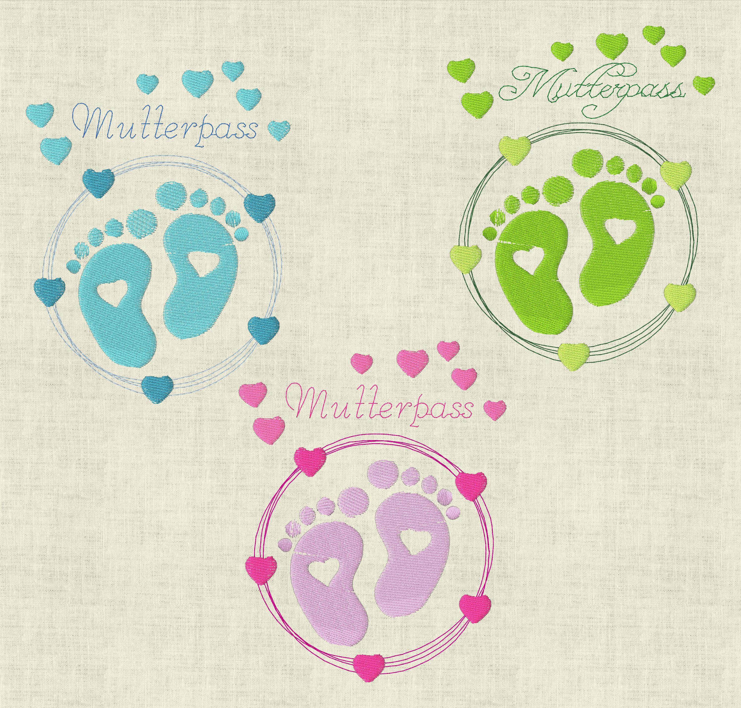 Stickdatei Mutterpass mit Herz Babyfüsse Set 513