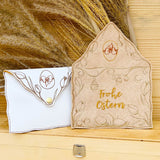 - Geschenkumschlag in 2 Varianten für den 16x26 Rahmen: mit aufgesticktem “Frohe Ostern” und als blanko Variante