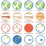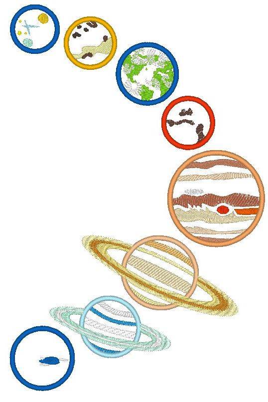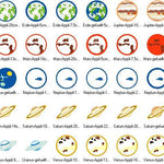 mit Venus, Merkur, Mars, Erde, Saturn, Jupiter, Uranus und Neptun