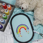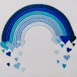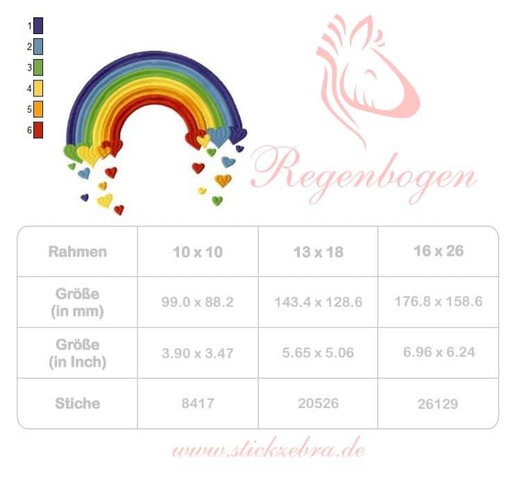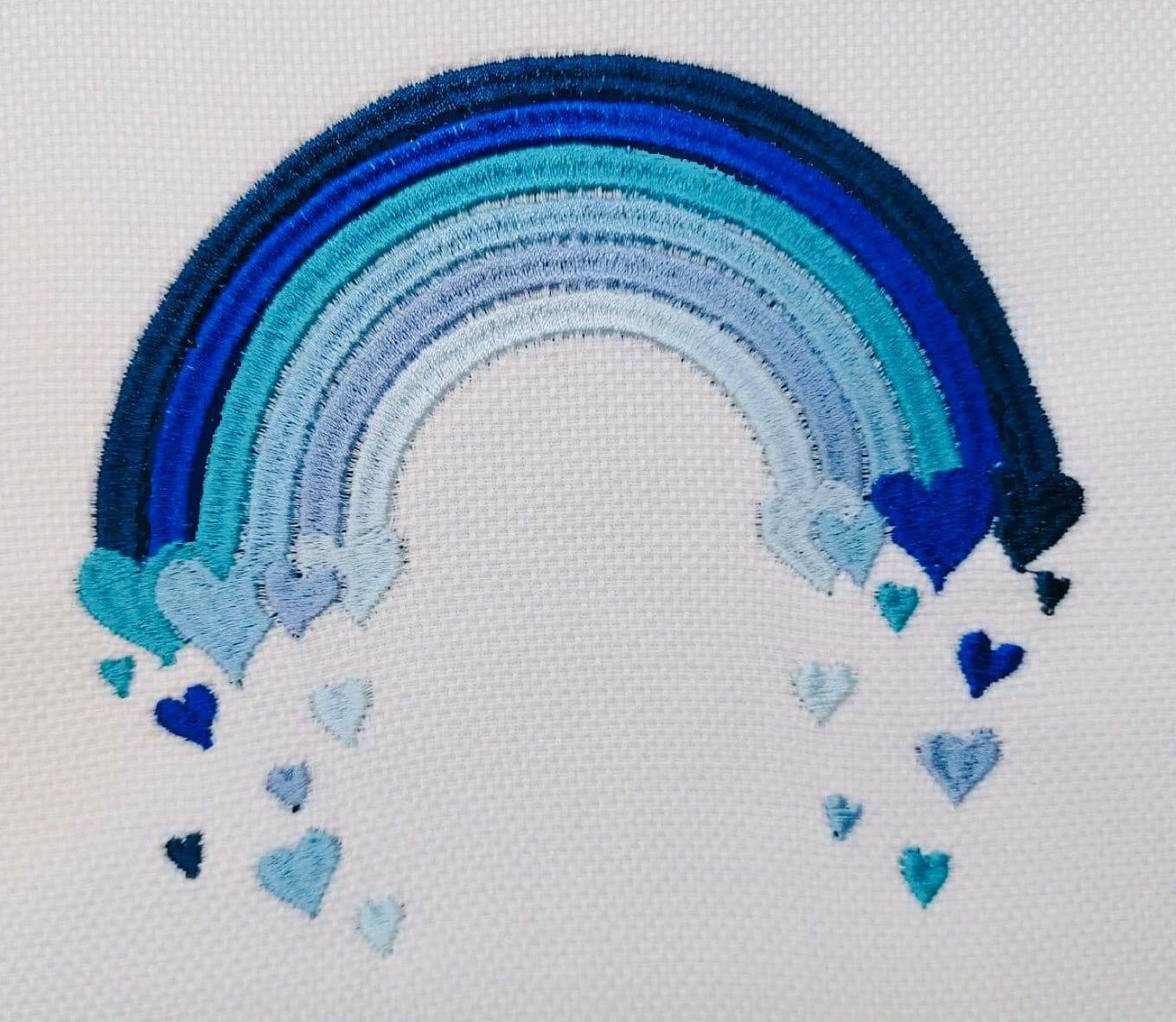 Der Regenbogen bringt nicht nur Farbe, sondern auch ganz viel Liebe in deine Stickprojekte. Aus seinen Bögen regnet es kleine Herzchen – perfekt, um Kleidung, Taschen, Kissen oder Geschenke mit einer Extraportion Freude zu versehen. Ob für Kinderzimmer, Geburtstage oder als liebevolle Botschaft zwischendurch – dieses Motiv lässt Herzen strahlen.