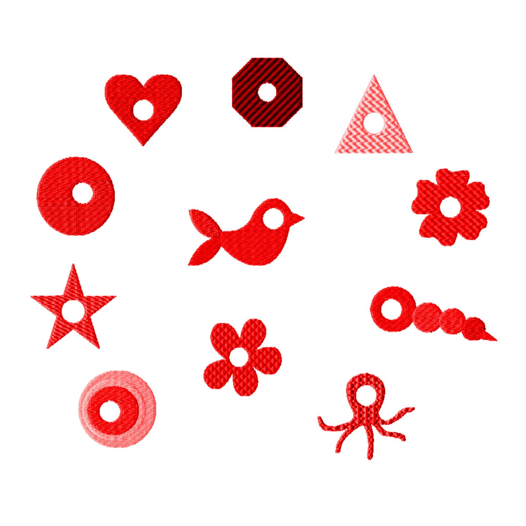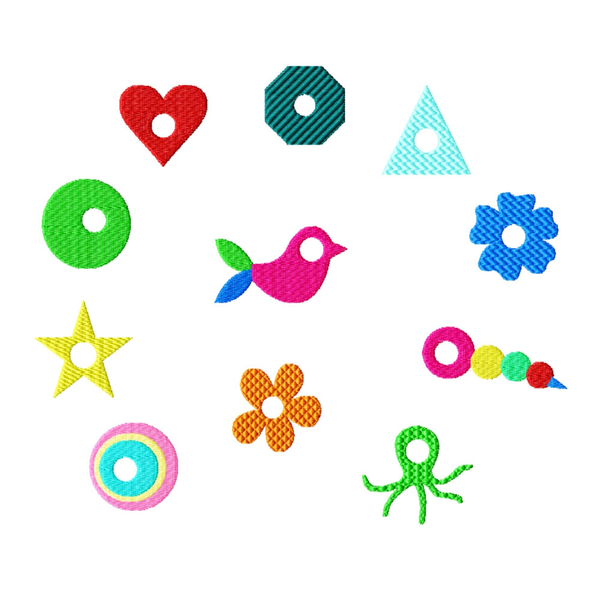 Zauberhafte Stickdatei verschönert einfache Knöpfe und Druckknöpfe. Die Datei ist für Druckknöpfe mit einer Knopfgröße von 12,4 mm angepasst. Die einzelnen Motive sind zwischen 4,0 cm und 6,0 cm groß.