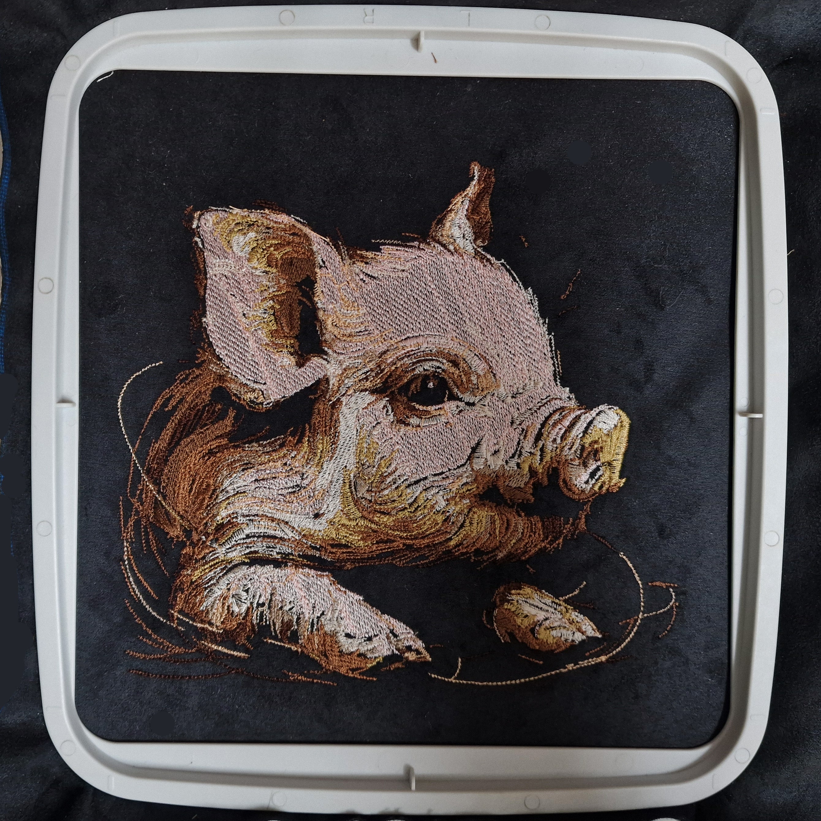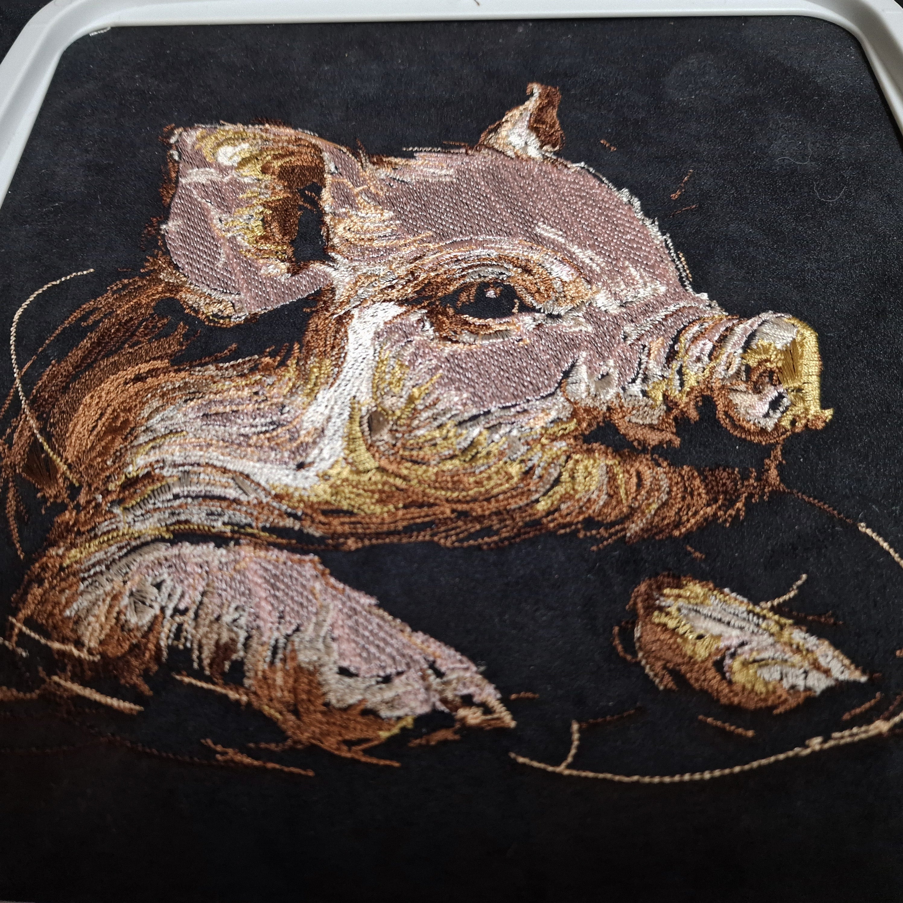 - Für realistische Stickdateien sind deutlich mehr Stiche als gewöhnlich nötig, damit sie ein schönes und detailreiches Ergebnis erhalten. Mit einem dickeren Garn und einer dickeren Nadel kann das Ergebnis unscharf und konturlos wirken. Zudem kann der Faden schneller reißen. Die Datei sollte auf einen festen Stoff sowie ein stabiles Stickvlies gestickt werden.