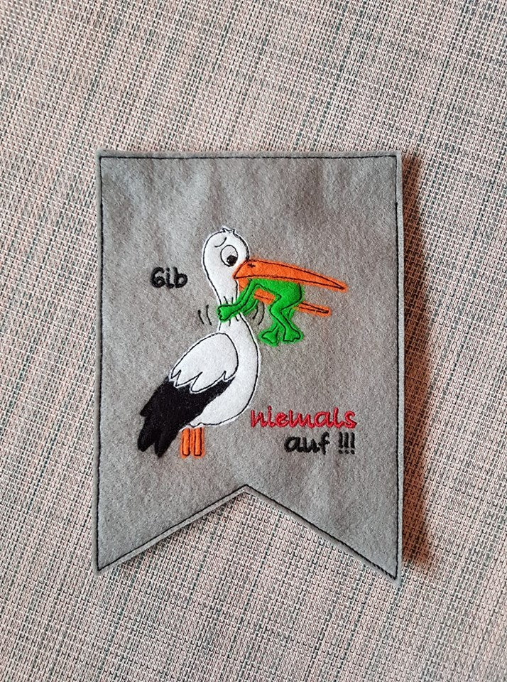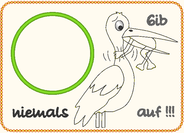 Es ist nicht gestattet, mittels dieser Stickdatei Aufnäher / Bügelbilder zum Verkauf anzufertigen. Es ist nicht gestattet, die Dateien oder Teile daraus zu verändern, zu kopieren oder an Dritte weiterzugeben.