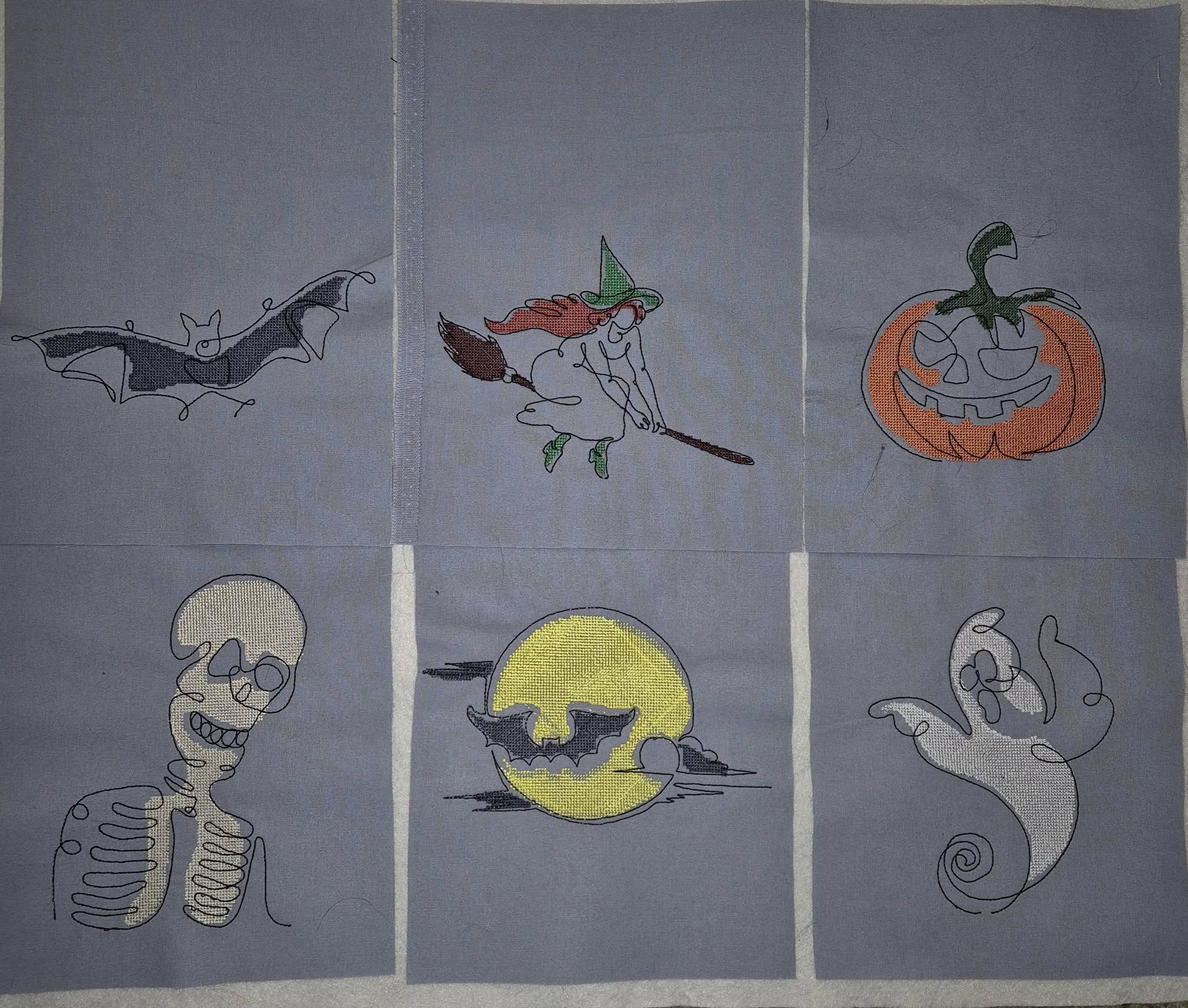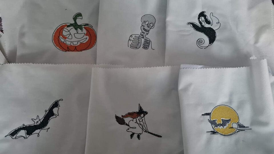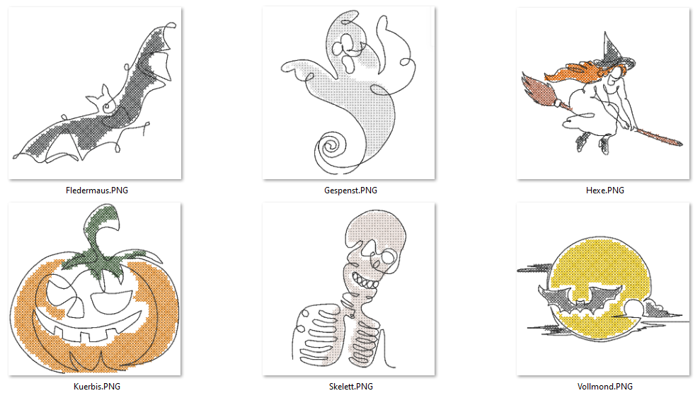 - 6 Motive (Fledermaus, Kürbis, Vollmond, Hexe, Gespenst und Skelett)