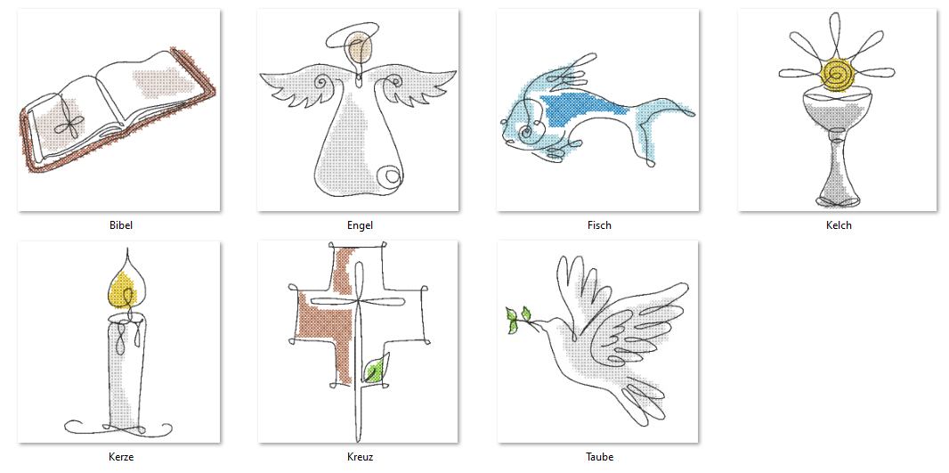Der Zipordner enthält Dateien in den Stickformaten: DST, EXP, HUS, JEF, PES 9 und 10, VIP, XXX und VP3. Es handelt sich lediglich um digitale Stickdateien und NICHT um fertige Stickereien !!!