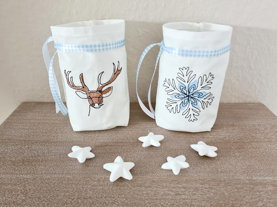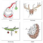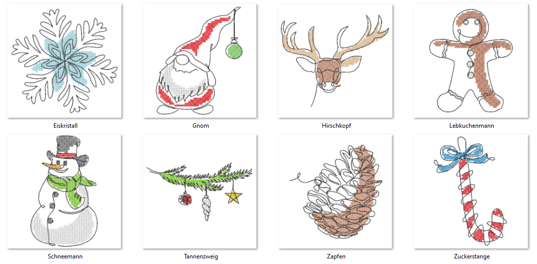 - 8 Motive (Schneemann, Tannenzweig, Zapfen, Zuckerstange, Eiskristall, Gnom / Wichtel, Hirschkopf, Lebkuchenmann)
