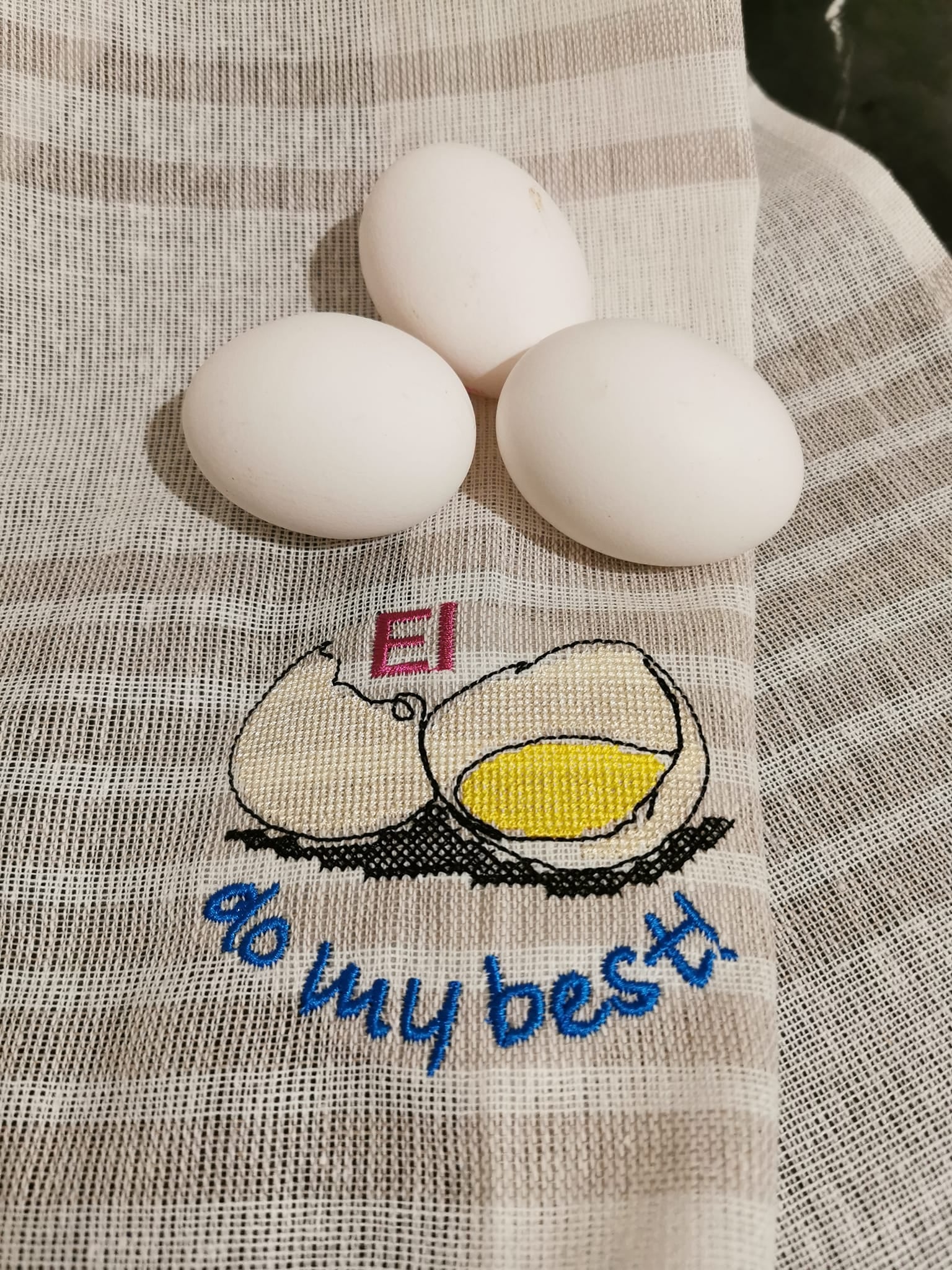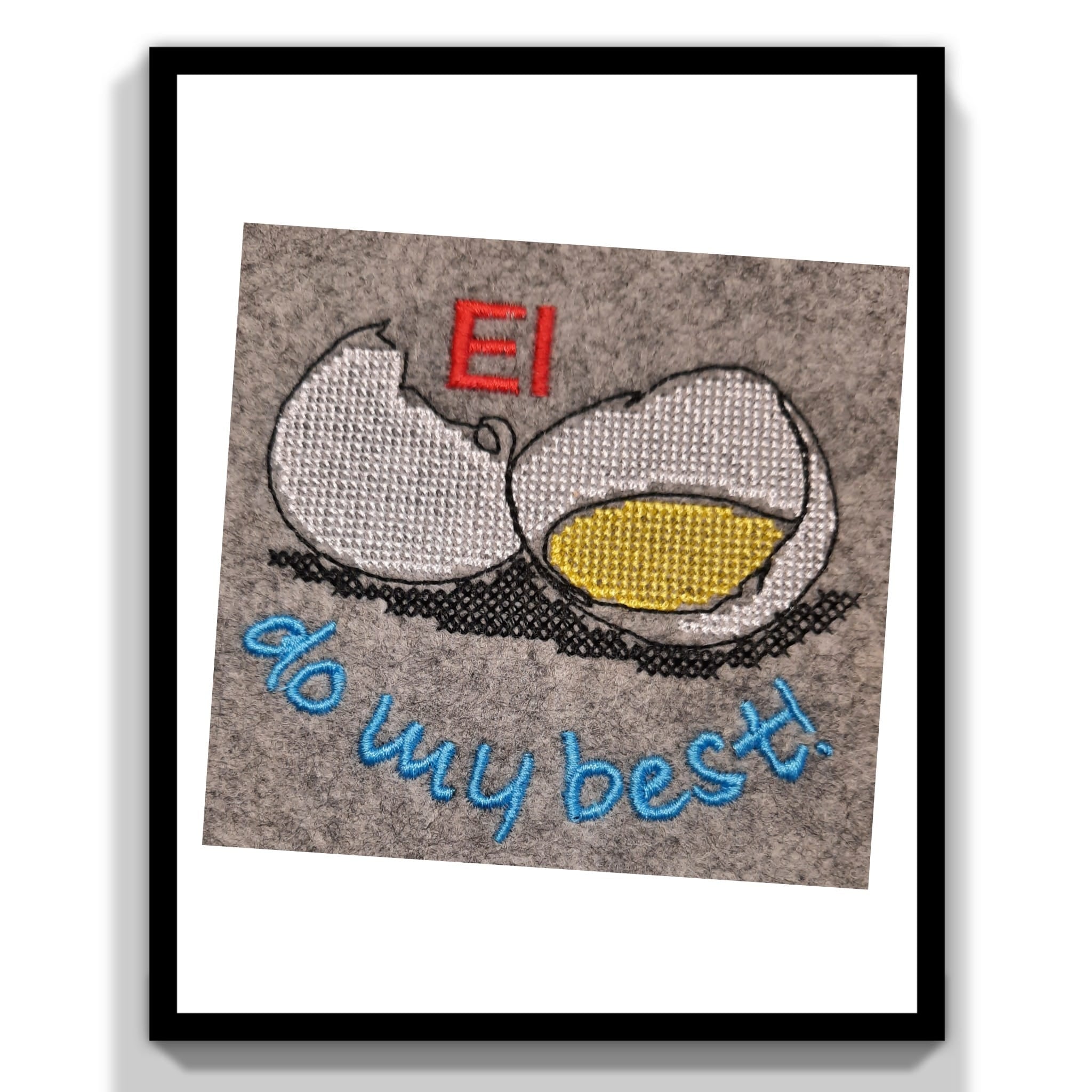 - Stickgarn in schwarz, weiß, blau und gelb
