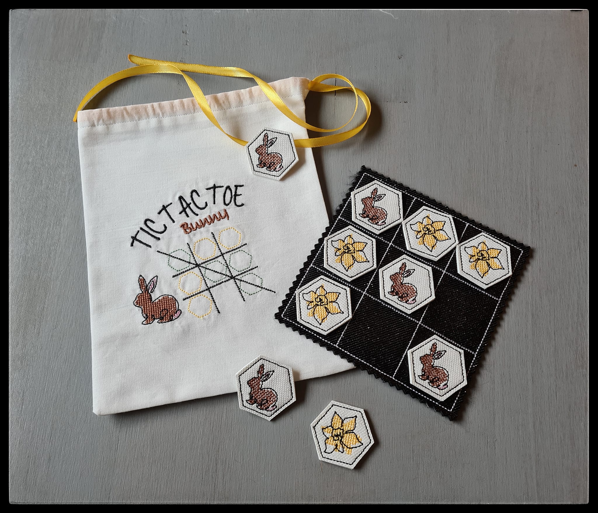 - Stickrahmen 10x10 cm (für das Spielfeld, das Motiv und die Spielfiguren)