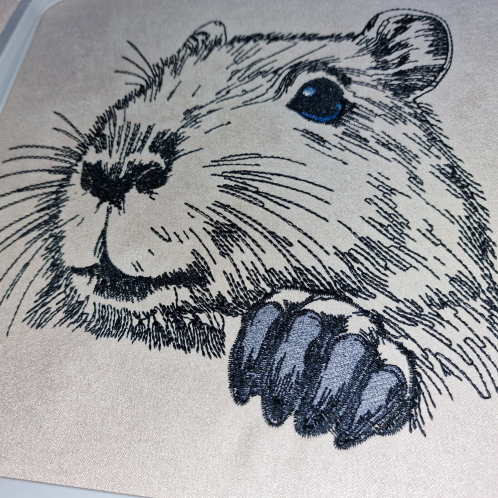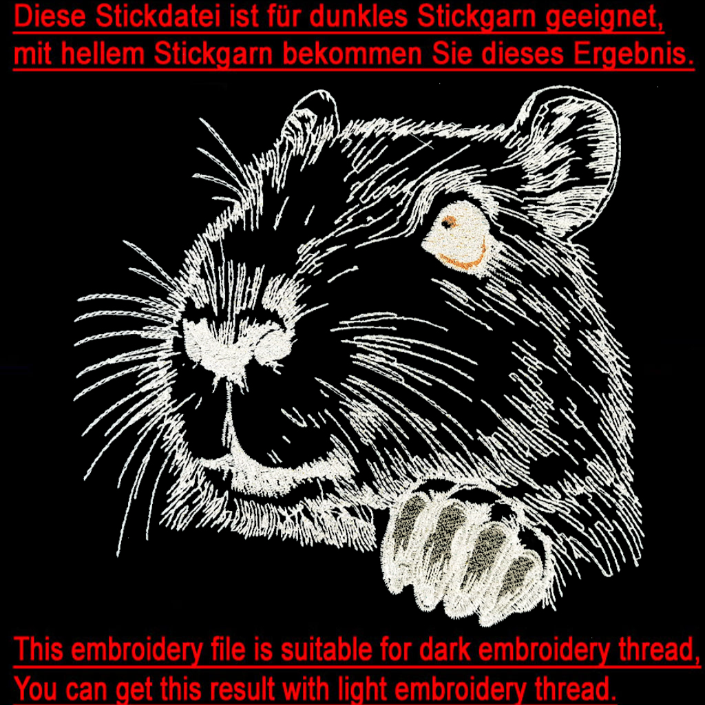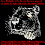- Für realistische Stickdateien sind deutlich mehr Stiche als gewöhnlich nötig, damit sie ein schönes und detailreiches Ergebnis erhalten. Mit einem dickeren Garn und einer dickeren Nadel kann das Ergebnis unscharf und konturlos wirken. Zudem kann der Faden schneller reißen. Die Datei sollte auf einen festen Stoff sowie ein stabiles Stickvlies gestickt werden.