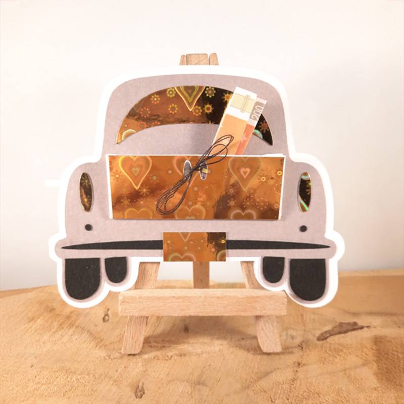 Mit dieser Autokarte im Oldtimer-Stil überreichst du Geld stilvoll und humorvoll.